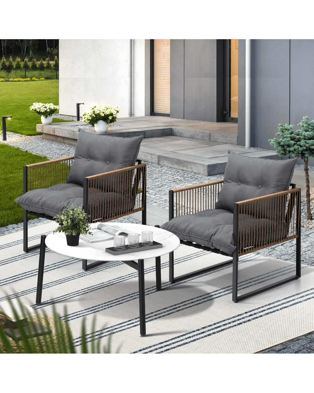 Livsip Outdoor Patio Set Furniture 70cm Coffee Table Rattan Chairs 3pcs - Multi