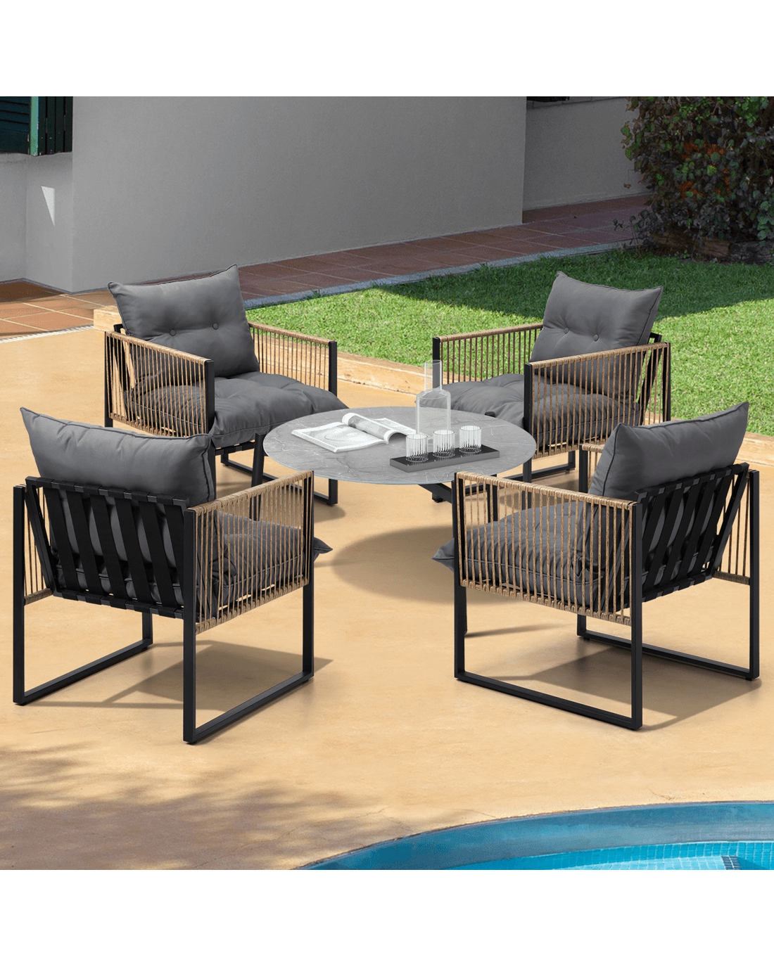 If you are looking for a classy and sophisticated outdoor set that adds a touch of marble-resque aesthetics to its setting, then this Livsip Outdoor Set is well within your radar of stylish furniture. None the ordinary and everything the exceptional.