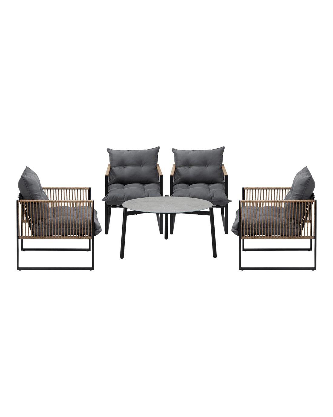 Livsip Outdoor Patio Set Furniture 70cm Coffee Table Rattan Chairs 5pcs - Multi