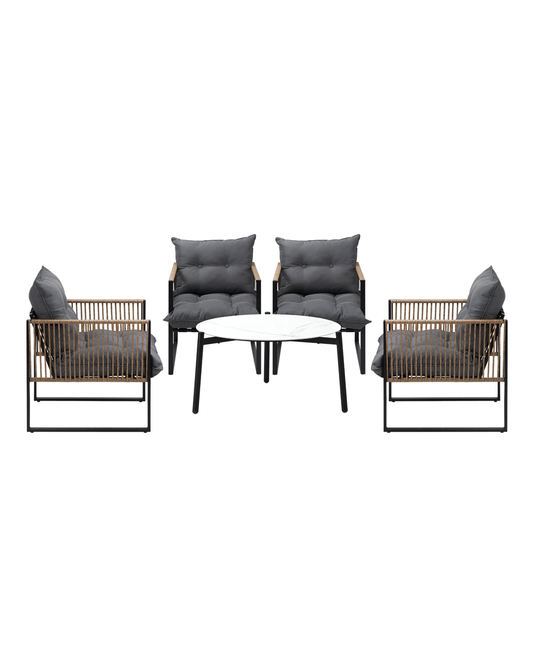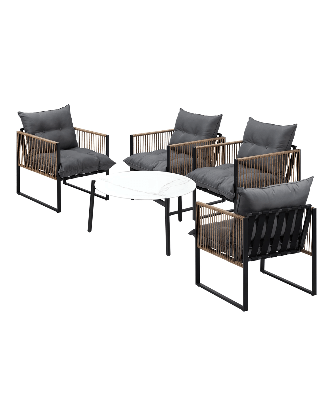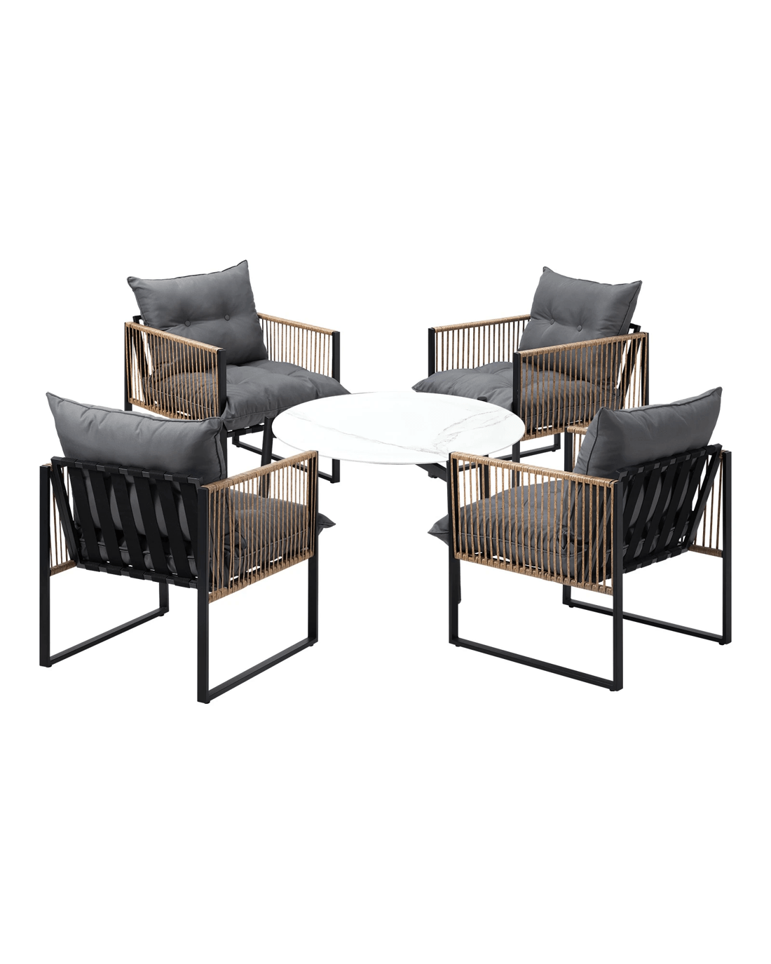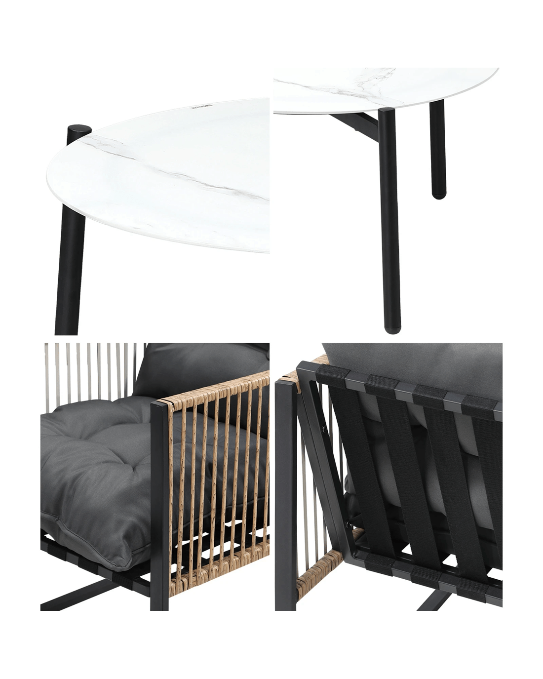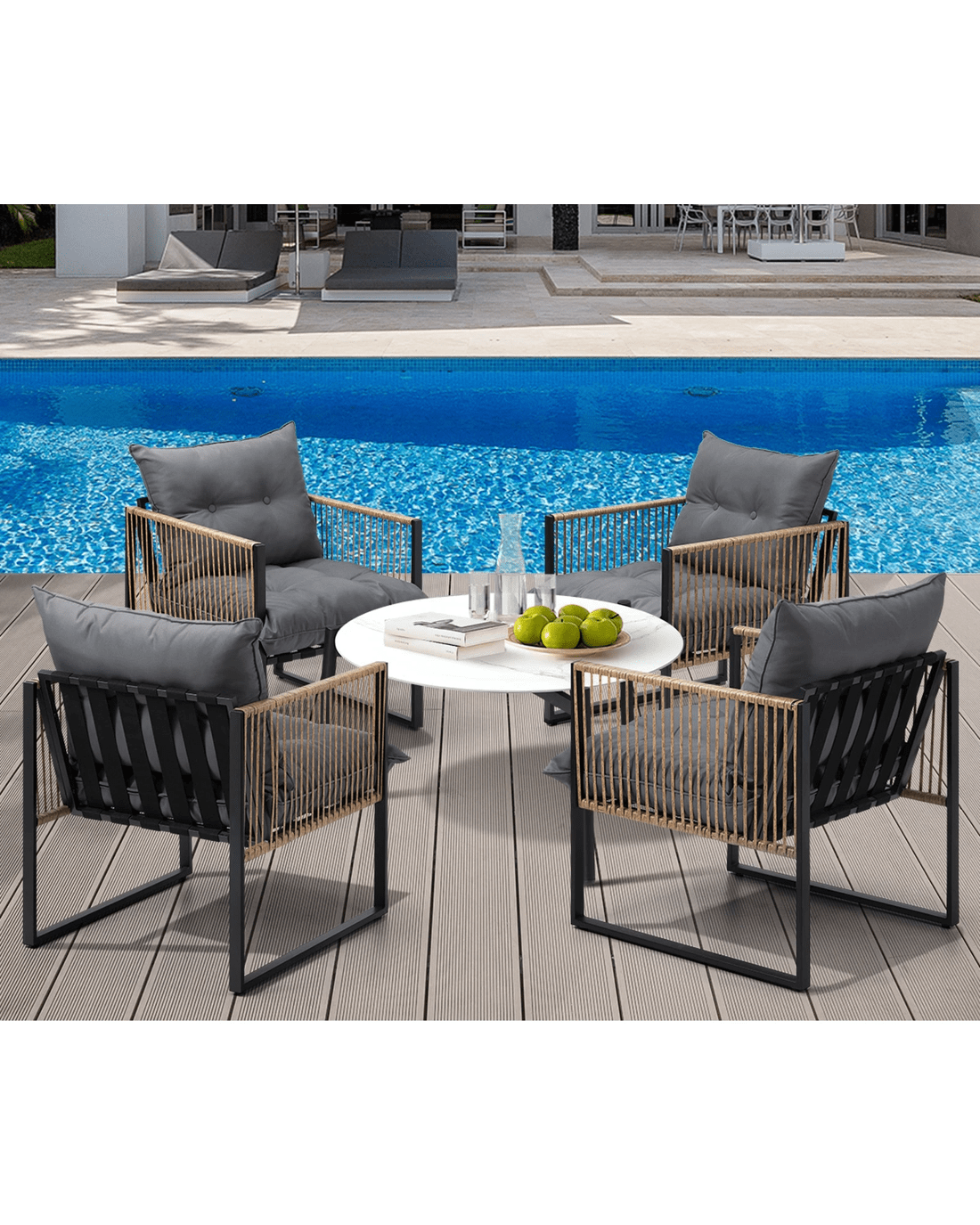 If you are looking for a classy and sophisticated outdoor set that adds a touch of marble-resque aesthetics to its setting, then this Livsip Outdoor Set is well within your radar of stylish furniture. None the ordinary and everything the exceptional.