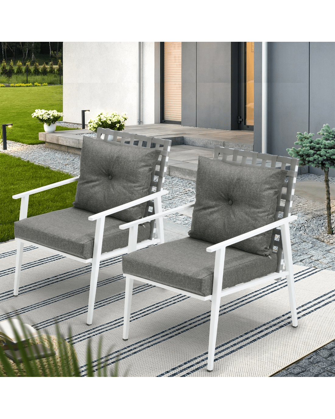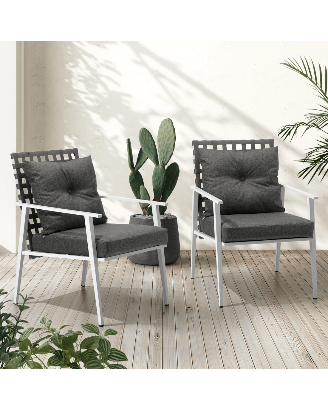 Living life to the fullest. Chilling out under the sun, moon and stars. Having a heartfelt tete-a-tete with your loved ones or a cherished friend. Simply pursuing and enjoying life that is meant to be. And the Livsip Outdoor 2-pc Armchair Set is ready to be there at home with you. Stylish. Contemporary. Beautiful. It has all the hallmarks of chic outdoor furniture that resonate with your discerning lifestyle. Sit back and feel the comfort of the well-padded cushioned seats and relax your arms on the smooth and supportive armrests. Have your lattes, your favourite brews and savour some yummy munchies to while the moments away. But how does it stand up to the harsh and sometimes fickle Australian weather? No worries mate as it is all weather-resistant with a powder-coated metal seat frame to add strength and durability for robust use. Not least, this twosome setup also looks fabulous with any indoor eclectic styling ideas that you may have. Convinced that this delightful outdoor package is for you? Click on the Buy option and soon you will be chairing good times with the Livsip Outdoor 2-pc Armchair Set at your side.