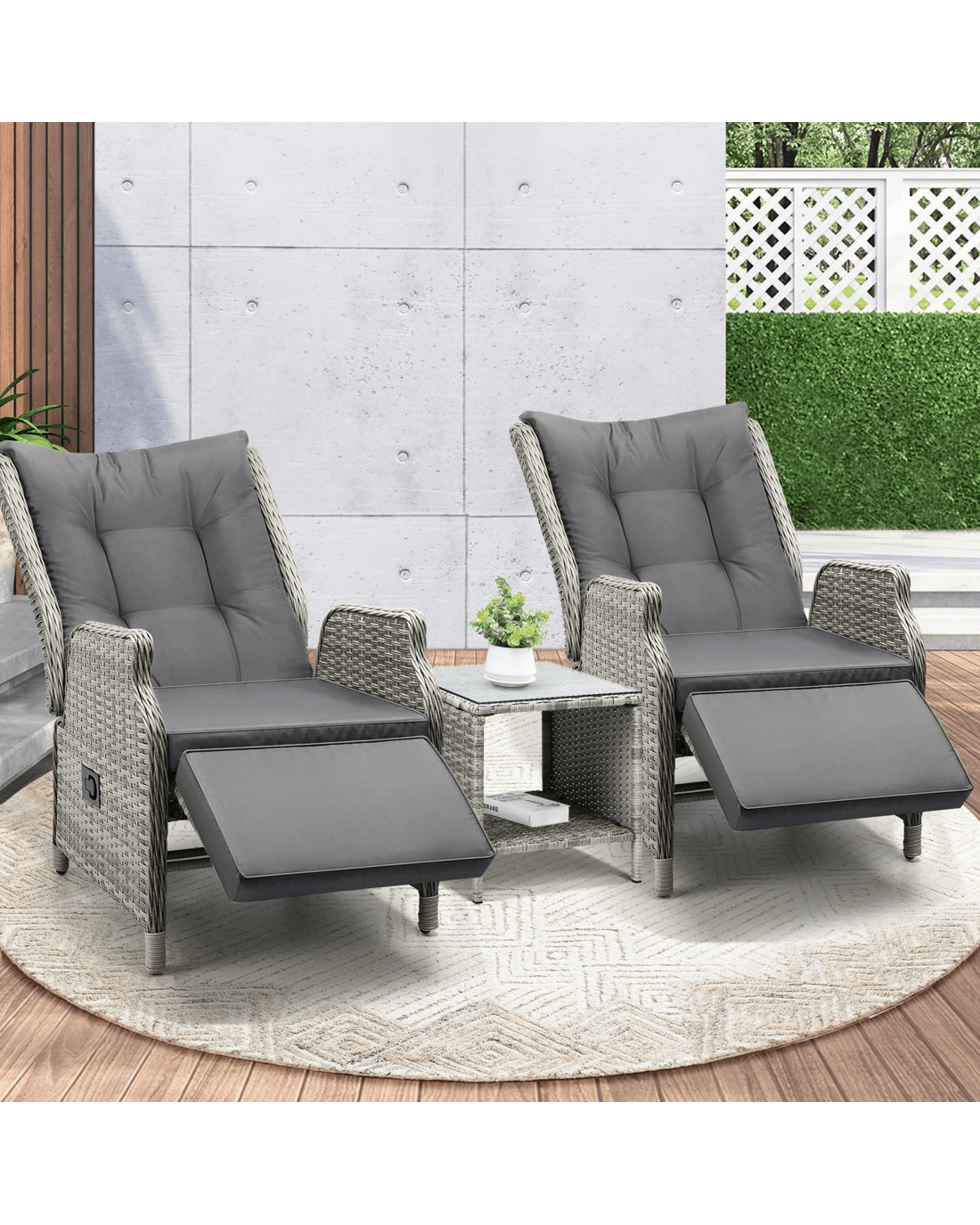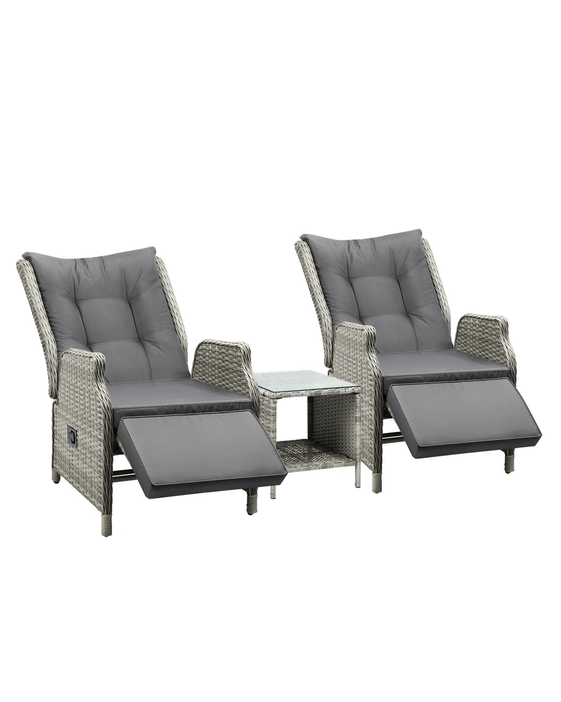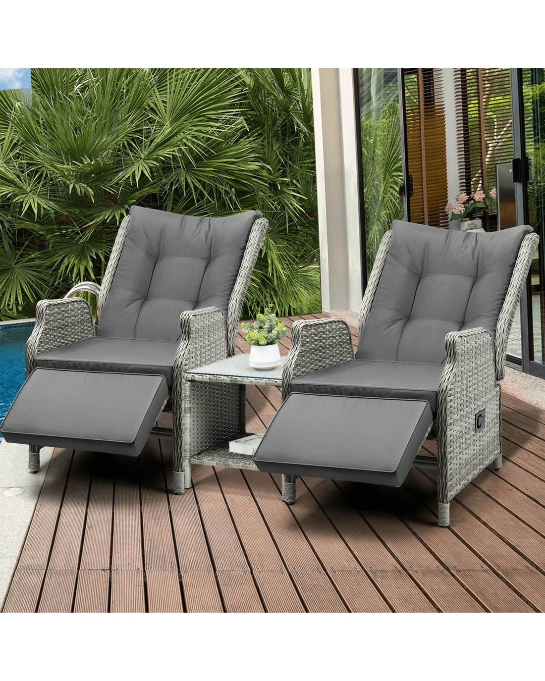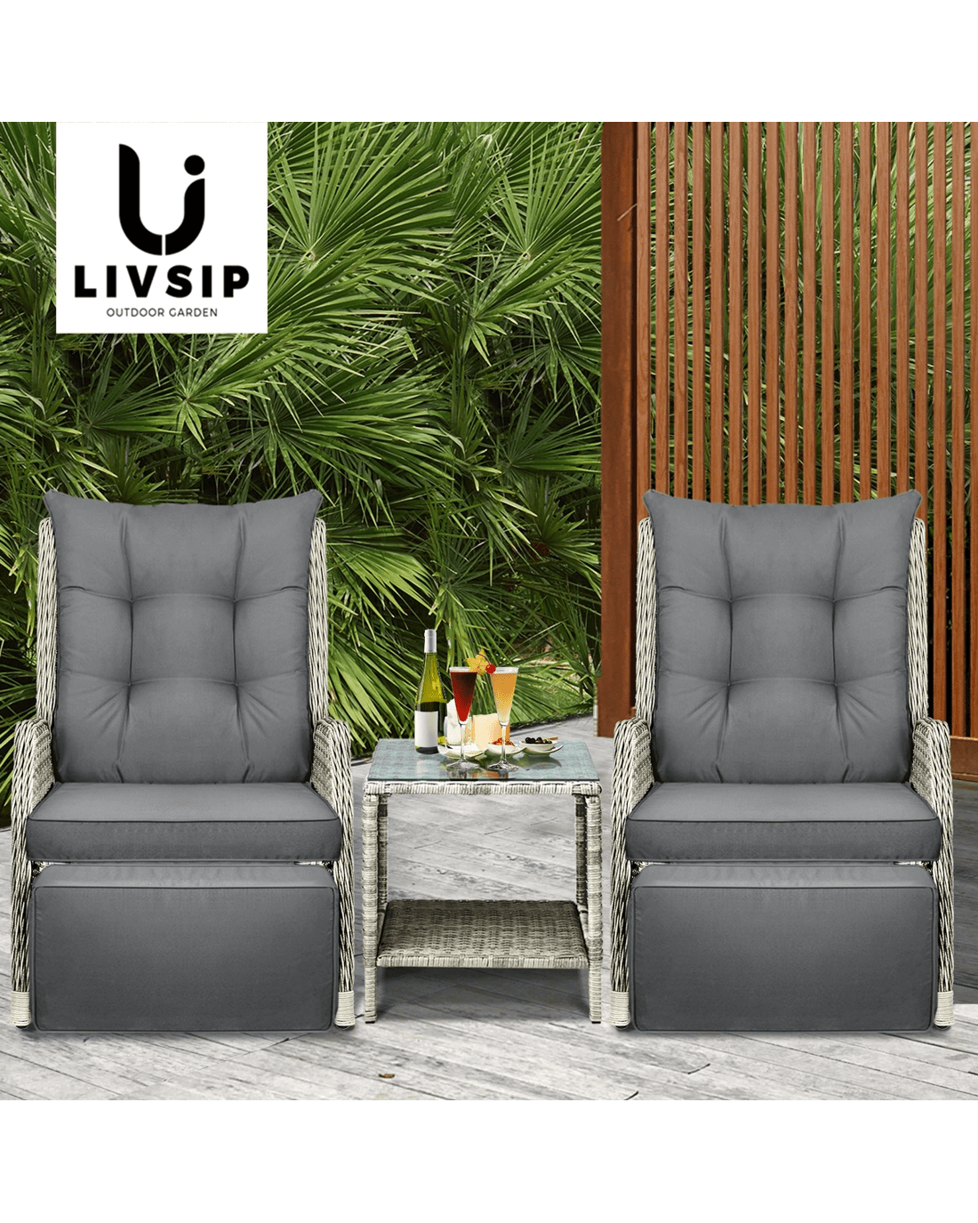 Livsip Outdoor Recliners Sun Lounger & Table Outdoor Patio Furniture Set Of 3 - Grey