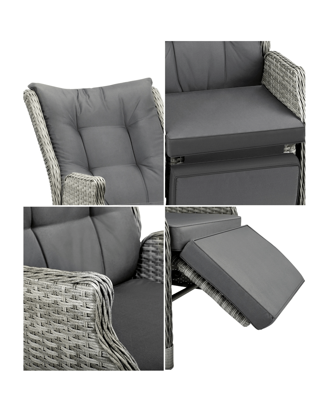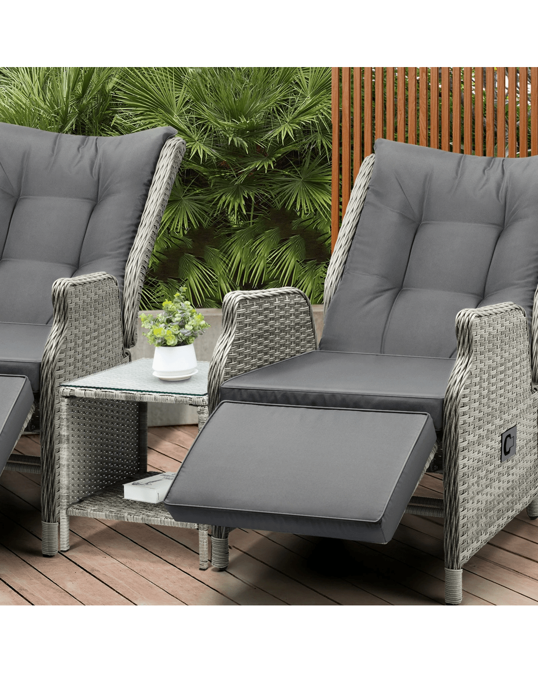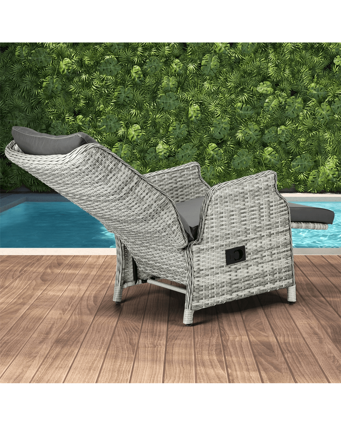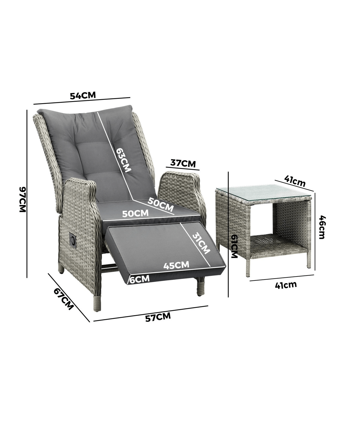 Livsip Outdoor Recliners Sun Lounger & Table Outdoor Patio Furniture Set Of 3 - Grey