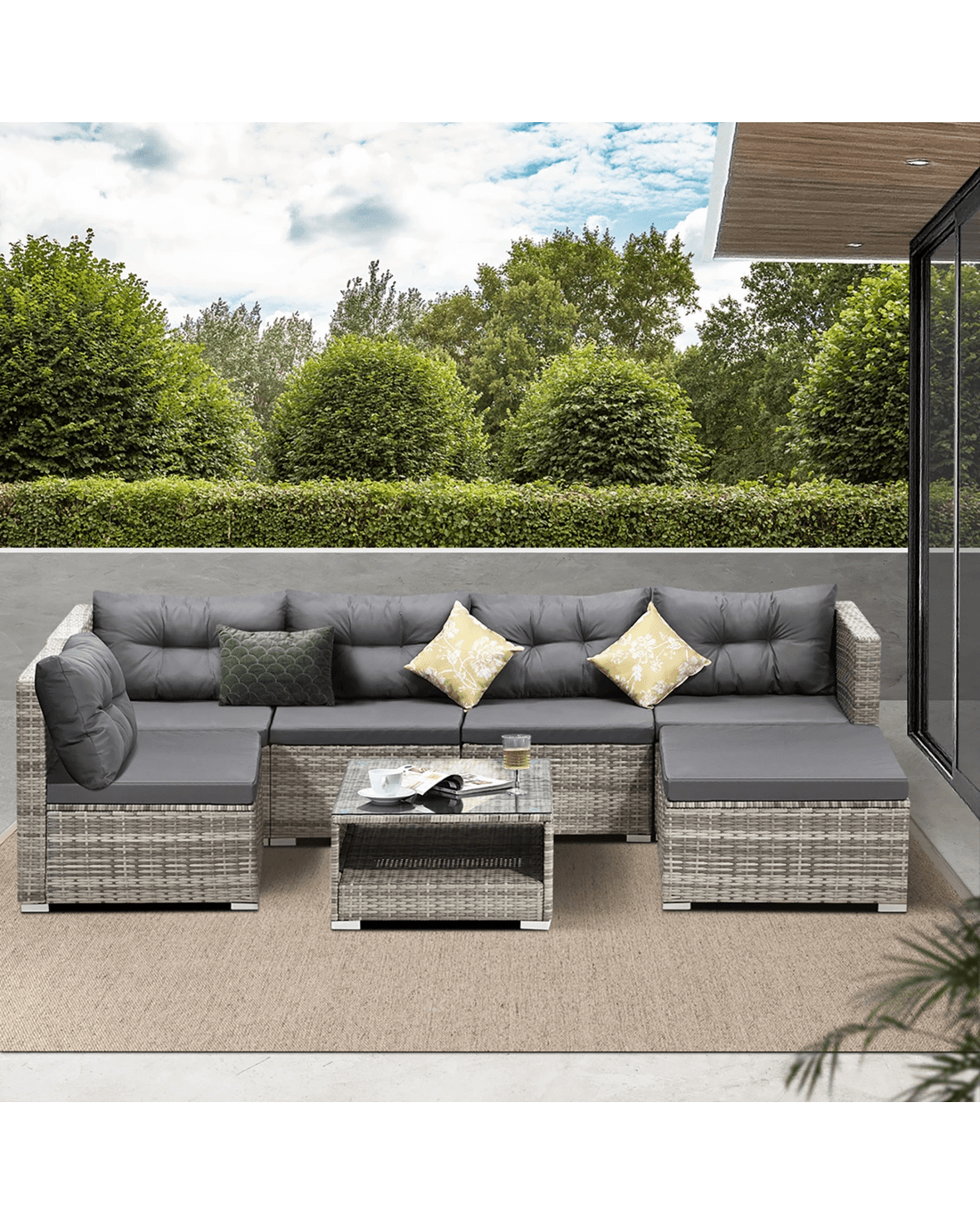 Livsip Outdoor Sofa Set 5 Seater Corner Modular Lounge Setting Patio Furniture - Grey