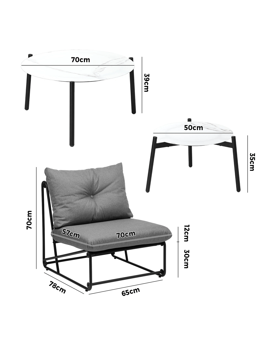 Single chair dimensions: 64cm(W) x 76cm(D) x 70cm(H)