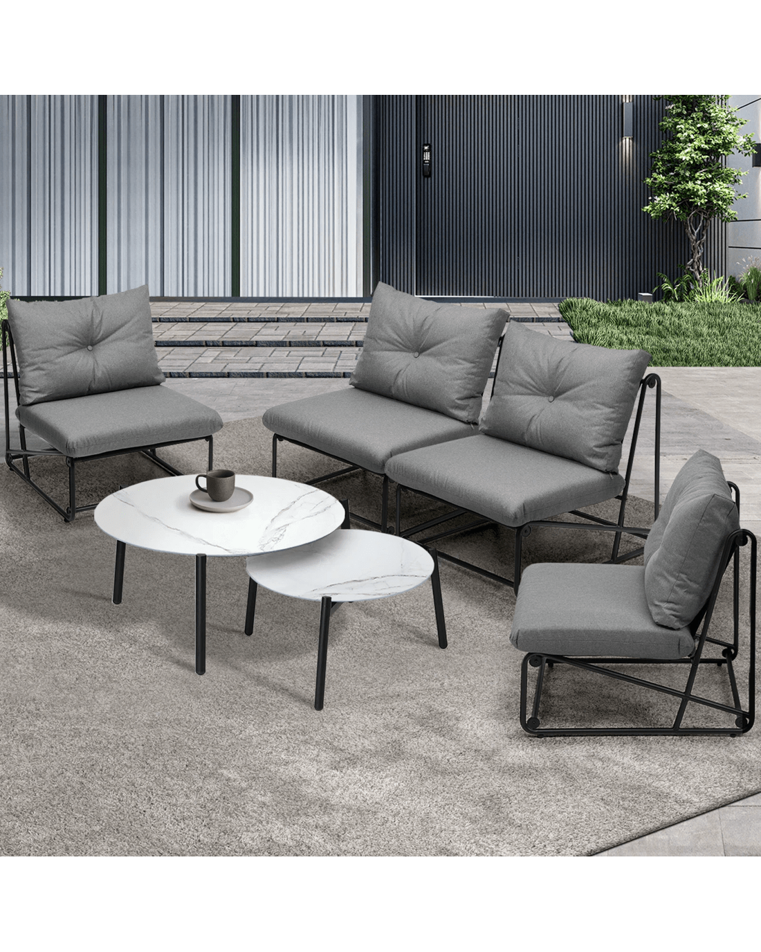 Sold by Kamprad's Oikos 1943Livsip Outdoor Sofa Set 6 PCS Lounge Setting Table Chairs - Grey