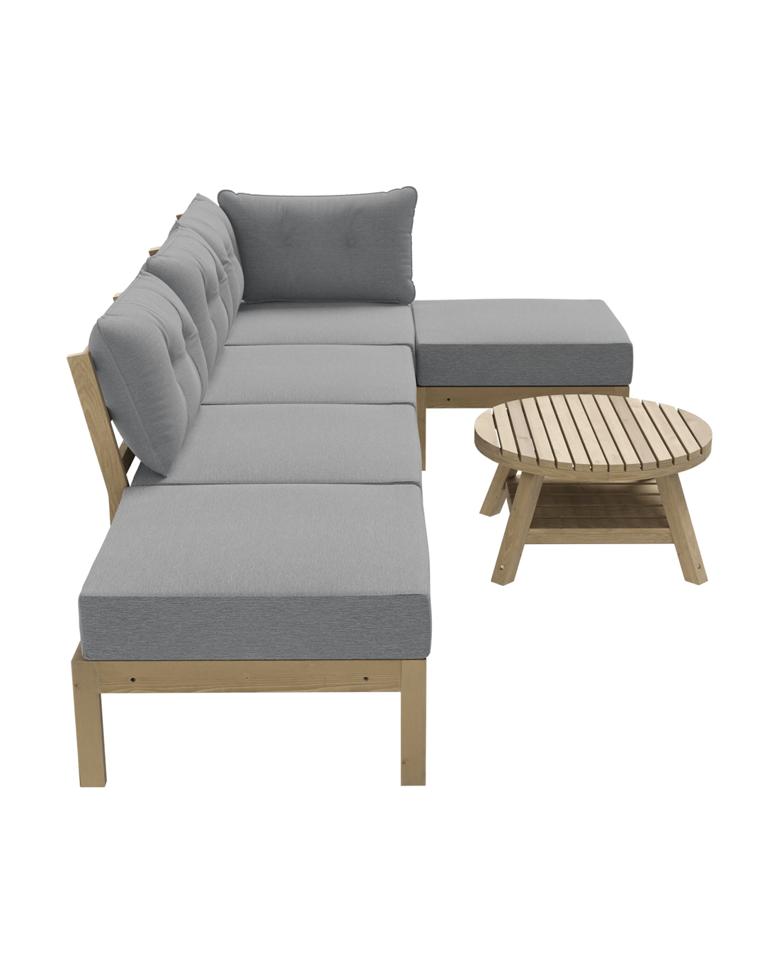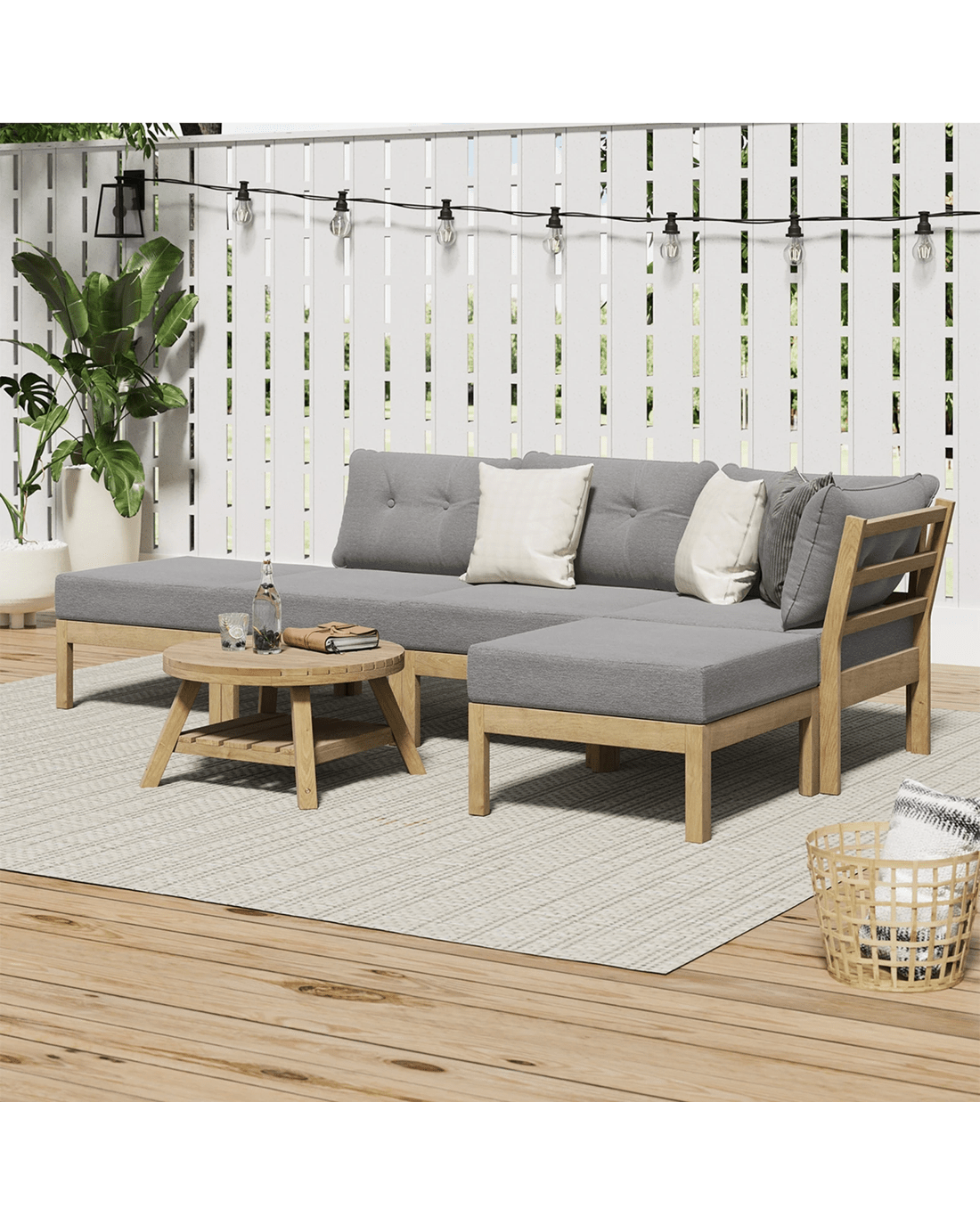Indulge in the outdoors in fine style with the Livsip Outdoor Sofa Set that has all the elements of comfort, practicality and durability that you have come to expect from exceptional furniture. Tufted backrest covers and thick and wide seat cushions are matched with a refined wooden frame for a classy and sophisticated look that transcends time and space.