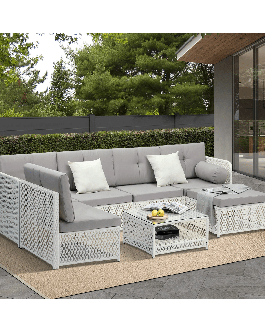 Every piece of the outdoor wicker sofa set is made with exacting standards. Starting with the strong wicker cum metal framework for the sofa and ottoman that enable heavy-duty usage and a matching thick glass top coffee table that provides ample space for all your entertaining and relaxation paraphernalia. The attention to details is meticulous throughout with no hard edges to be felt anywhere. Not to be outdone, the sofa cushions and pillows are equally enticing with rich form padding for long-lasting comfort and enveloped in removable and washable covers for hassle-free cleaning and washing.