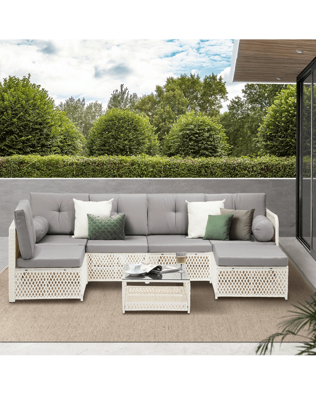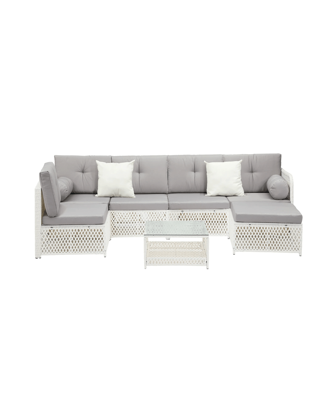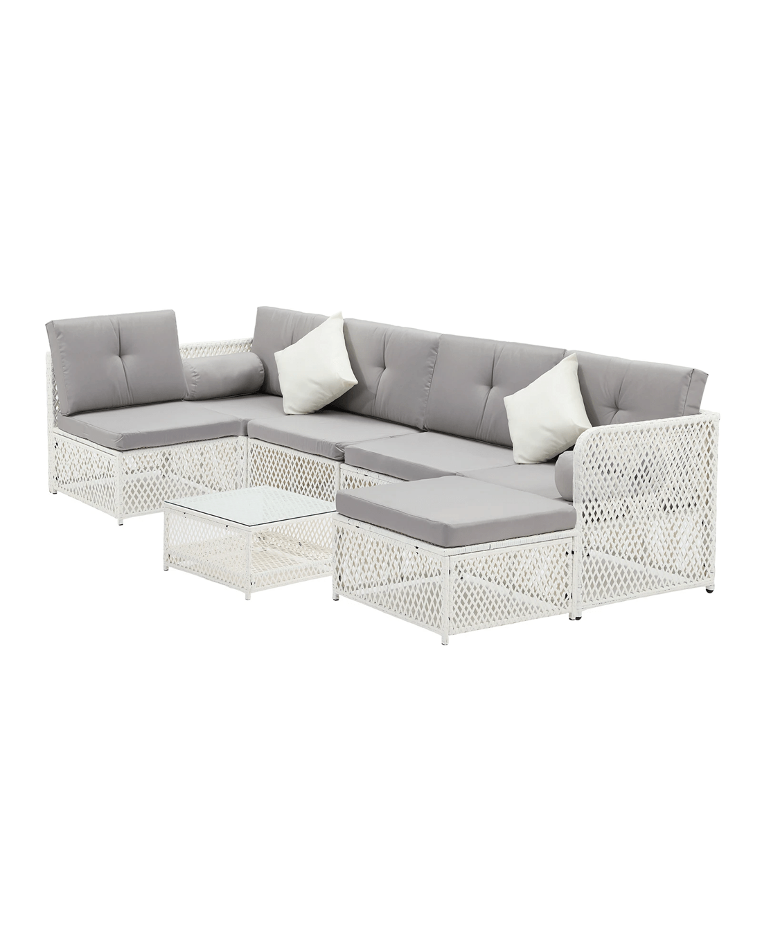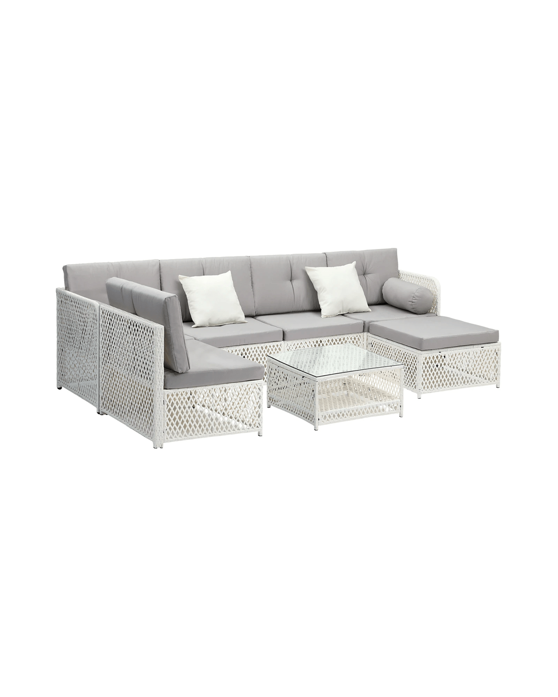Sold by Kamprad's Oikos 1943Livsip Outdoor Sofa Set 6 Seater Wicker Lounge Setting - White