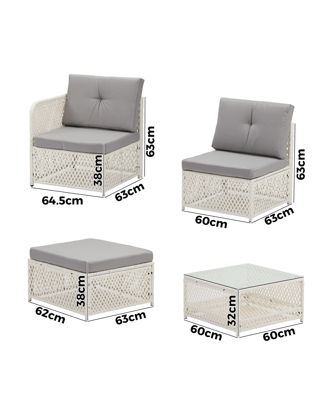 Single sofa dimensions: 60cm x 63cm x 63cm (W x D x H)