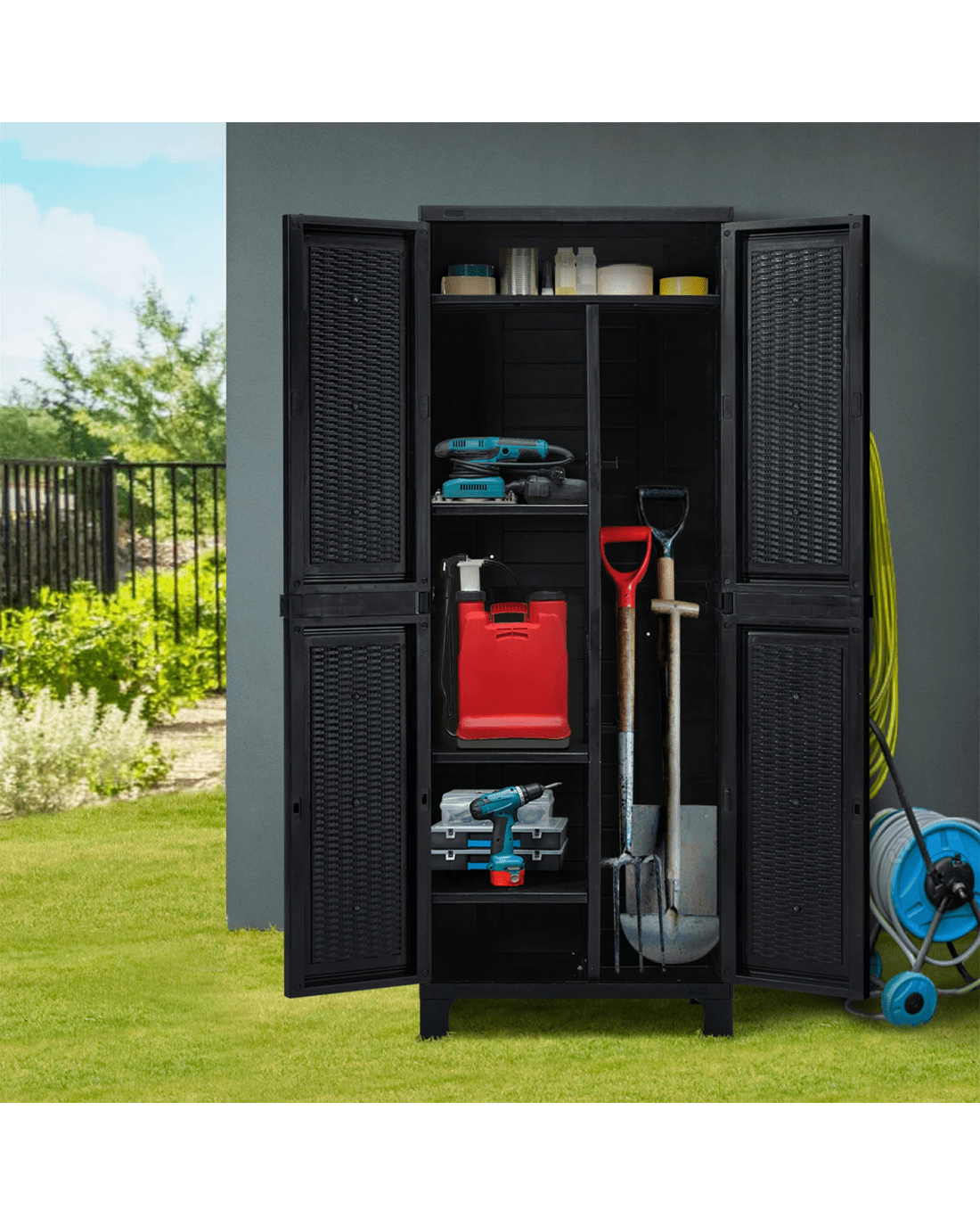 Sold by Kamprad's Oikos 1943Livsip Outdoor Storage Cabinet Box Cupboard Garage Garden Adjustable Tall - Black