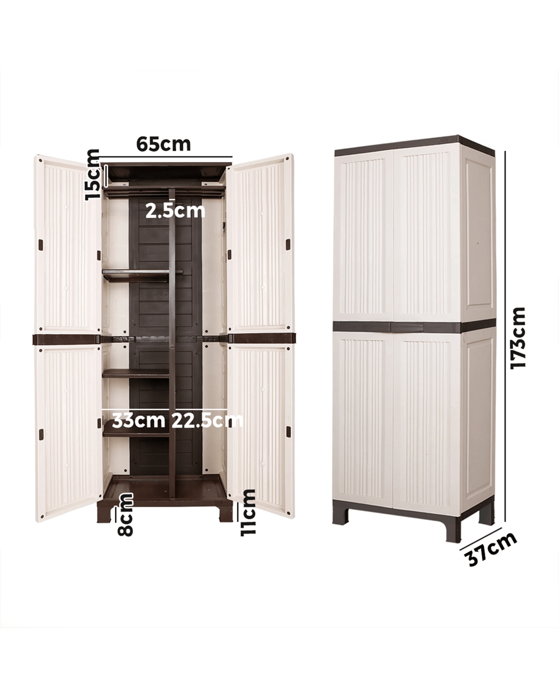 Livsip Outdoor Storage Cabinet Box Garage Garden Cupboard Adjustable Lockable - Beige