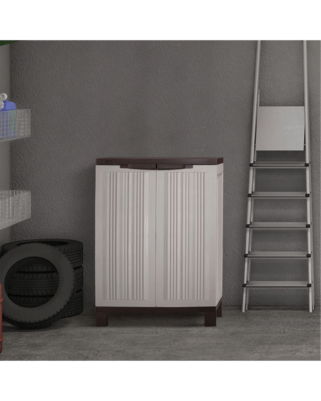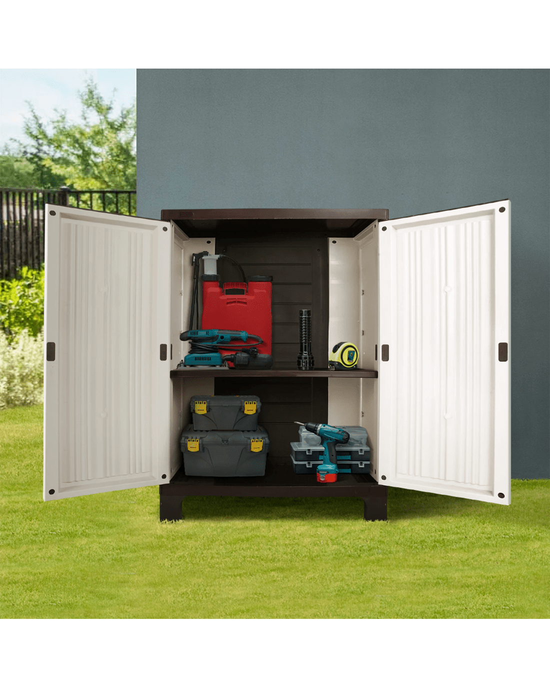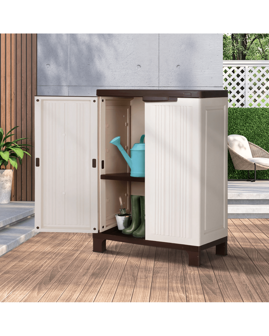 Sold by Kamprad's Oikos 1943Livsip Outdoor Storage Cabinet Box Garden Garage Cupboard Adjustable Lockable - Beige