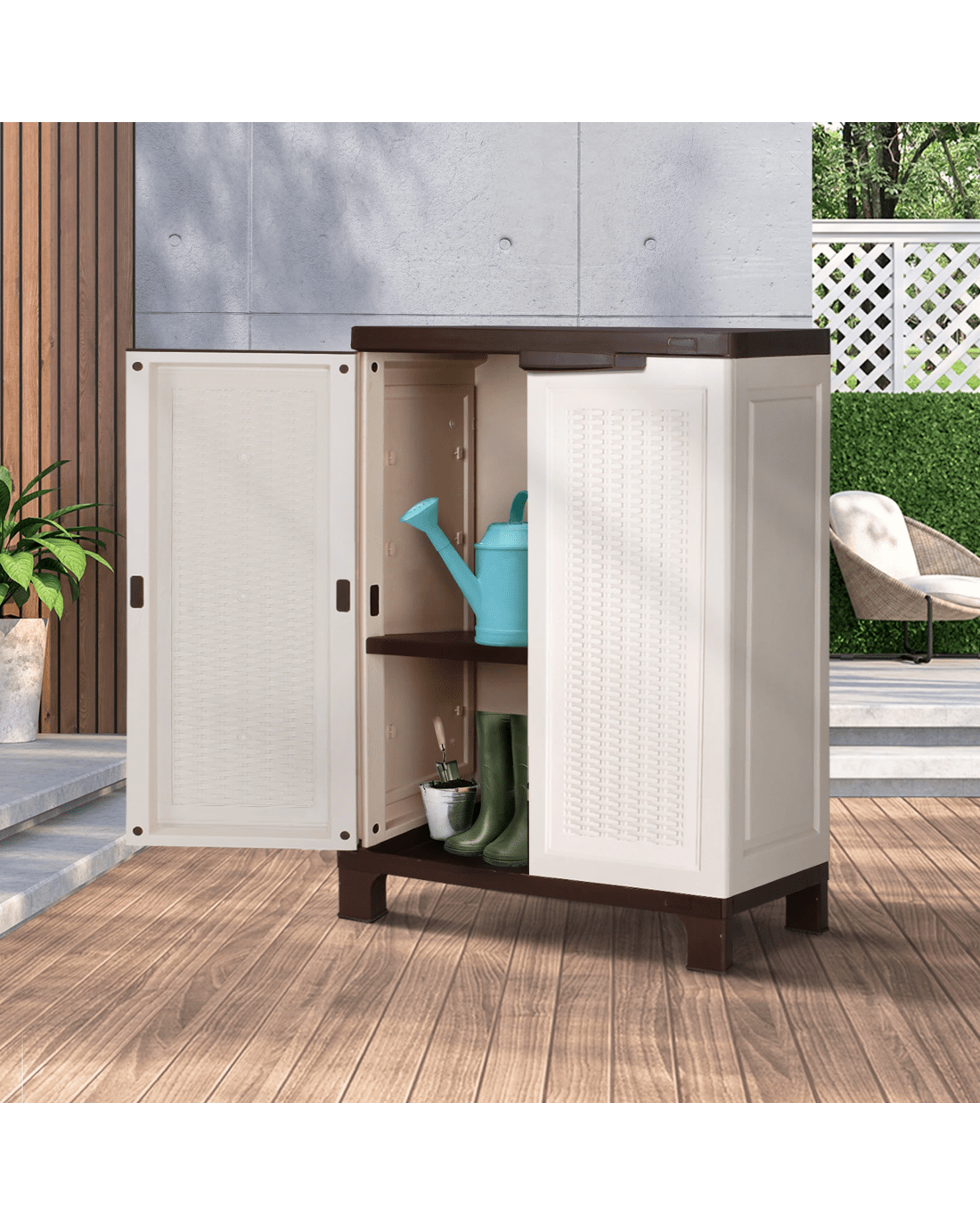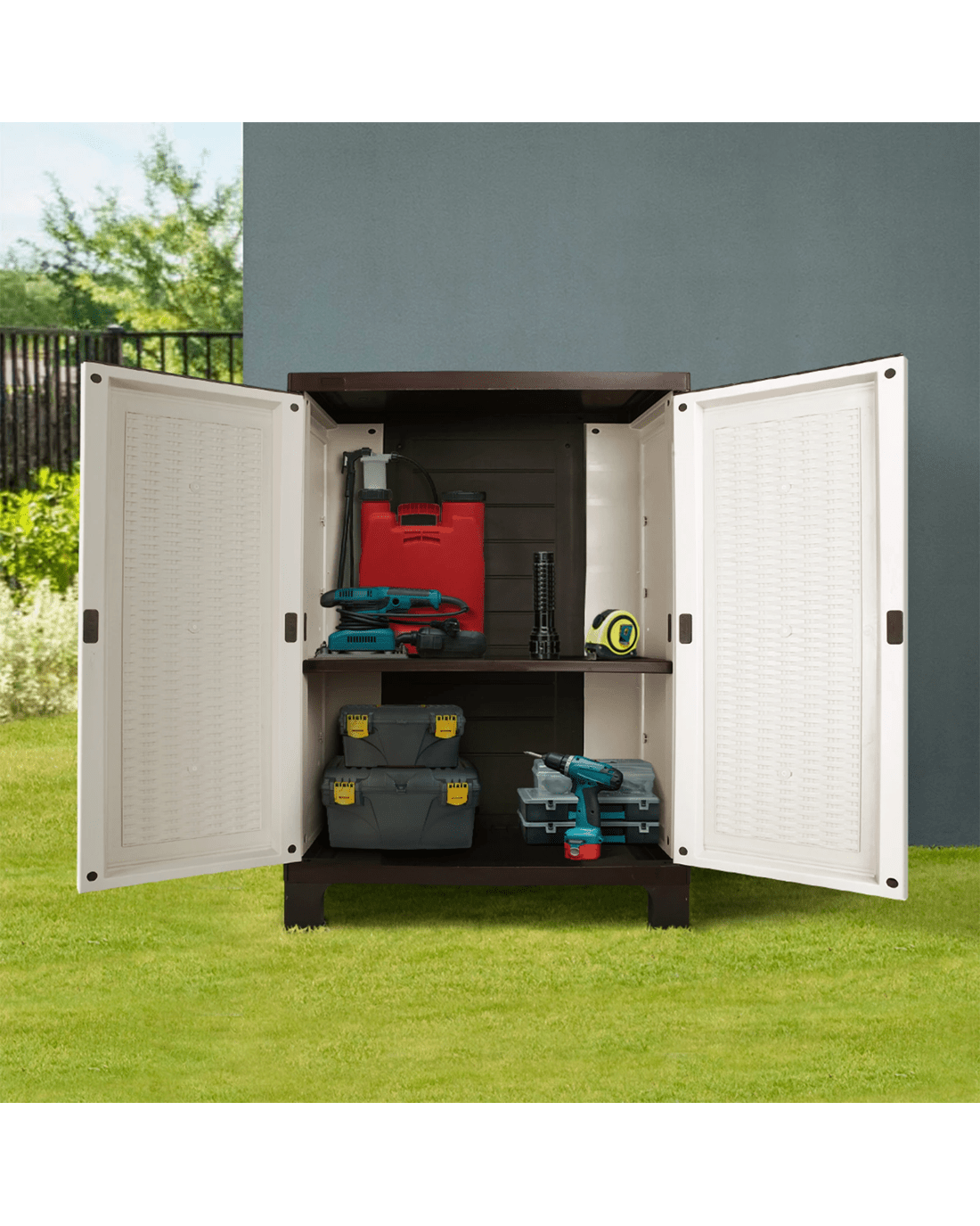 Sold by Kamprad's Oikos 1943Livsip Outdoor Storage Cabinet Box Garden Garage Cupboard Adjustable Lockable - Beige