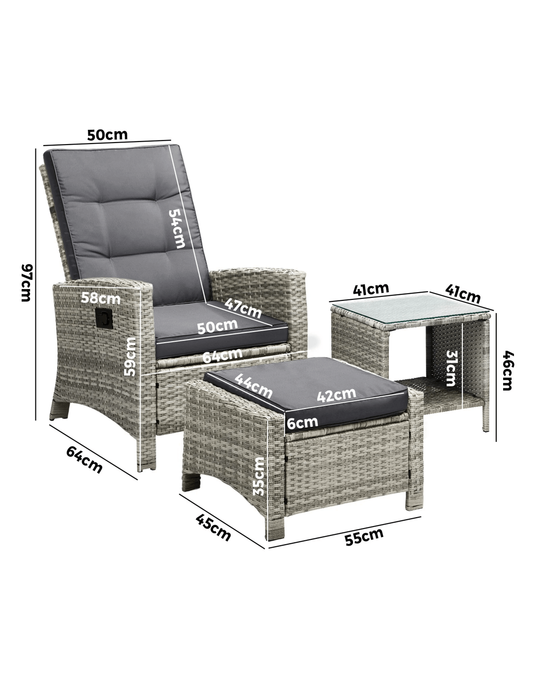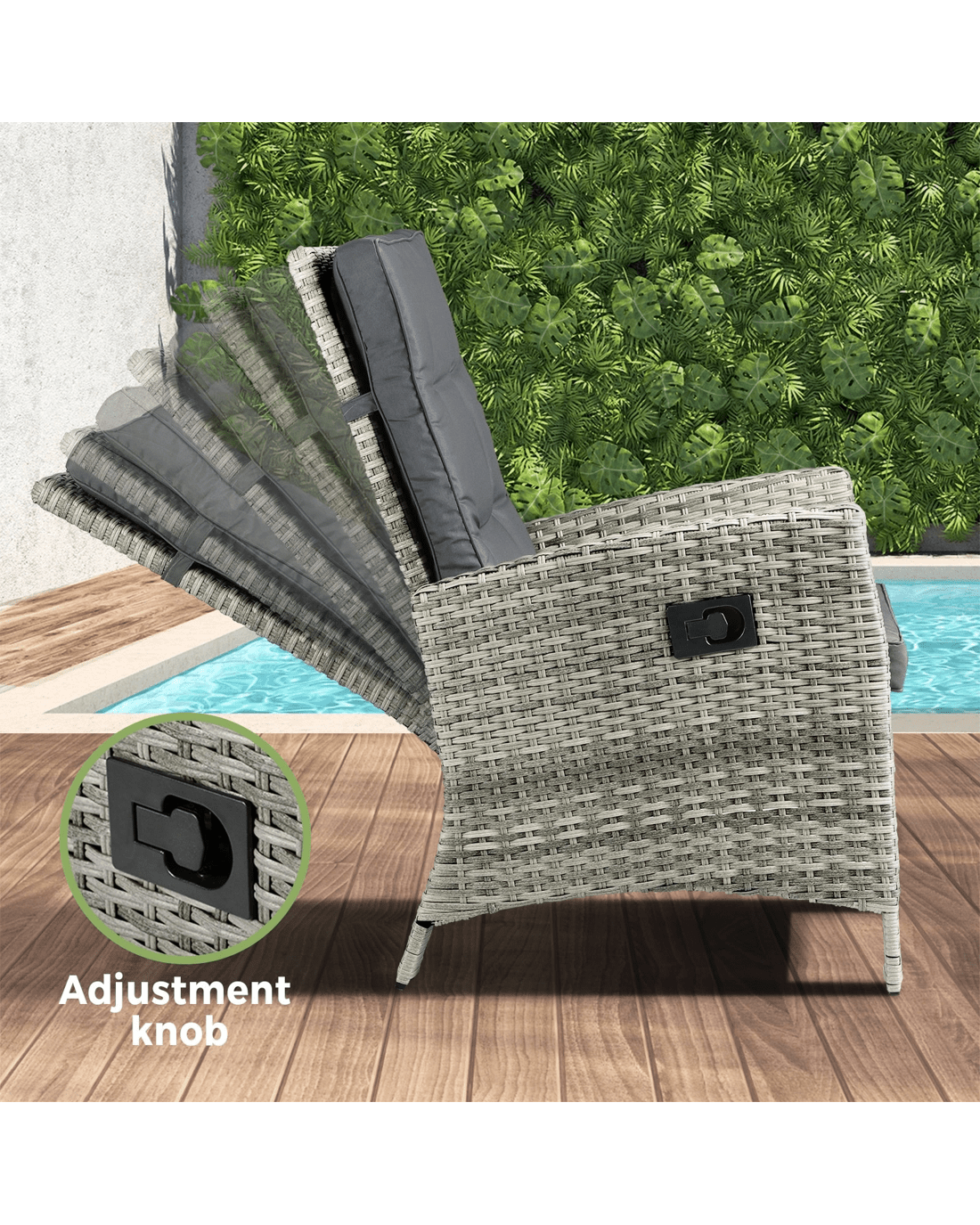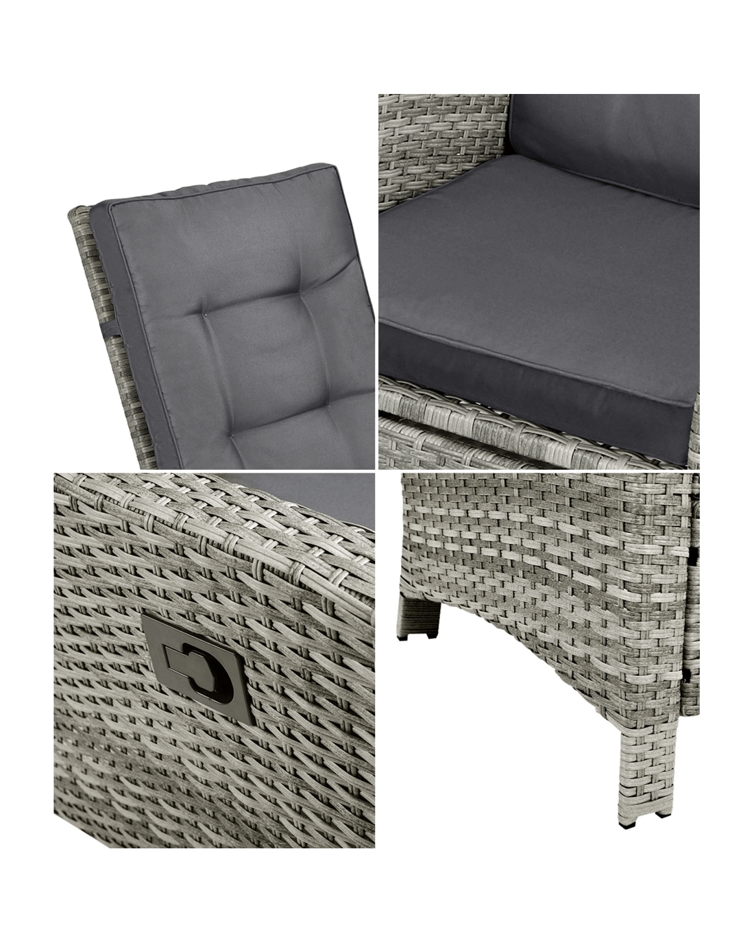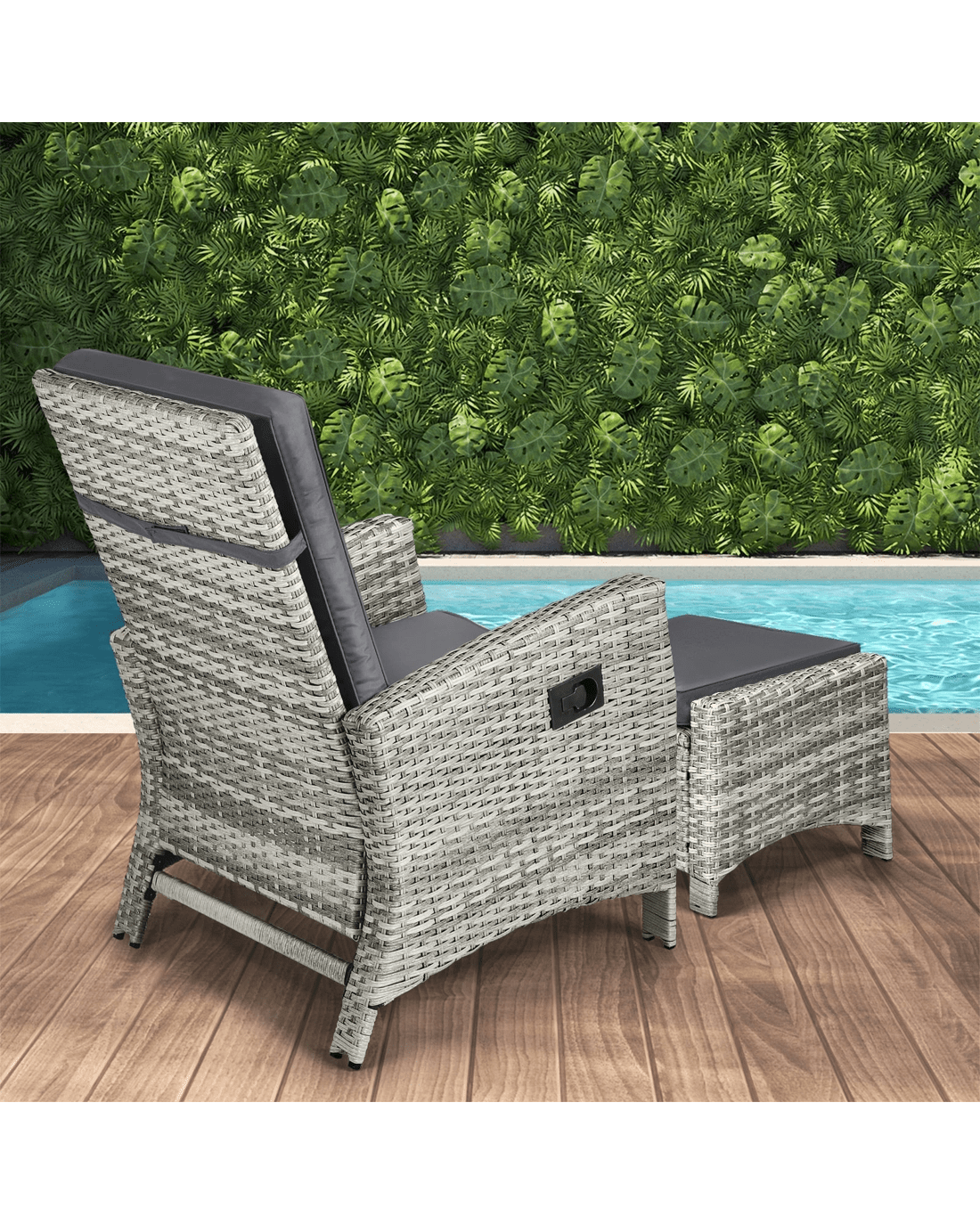 Livsip Recliner Chair Outdoor Sun Lounge Setting Wicker Sofa Patio Furniture 3pc - Grey
