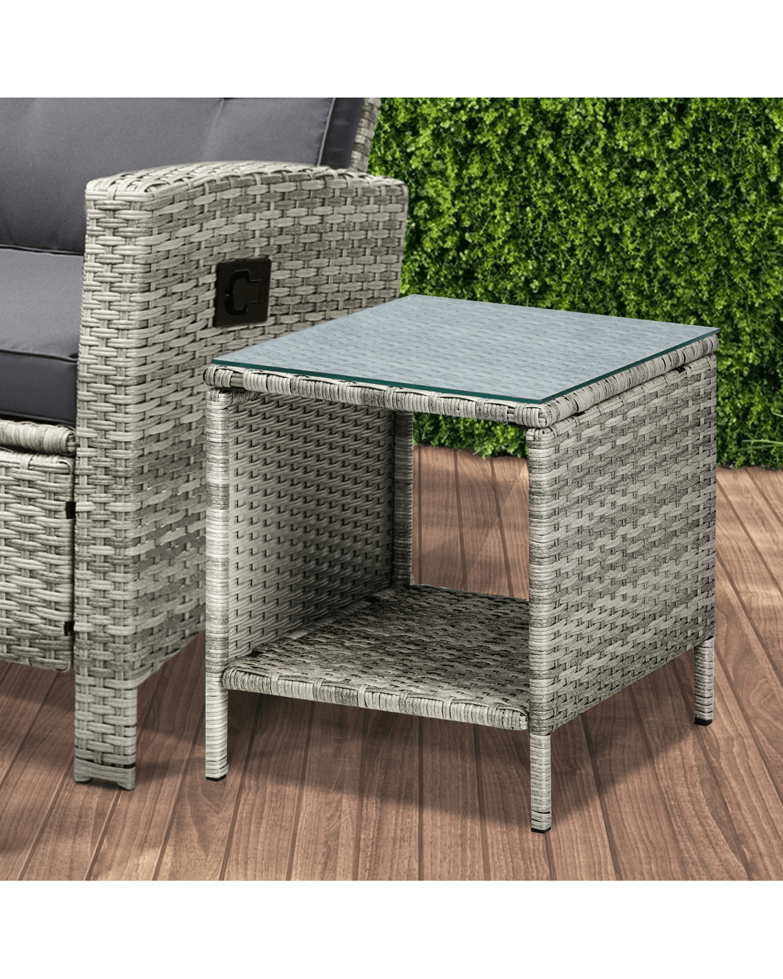 And to top off the set, a matching coffee table adds even more elegance to the ensemble with its immaculate wicker border finish and a 5mm thick tempered glass top with suction pads to keep the top safely in place.