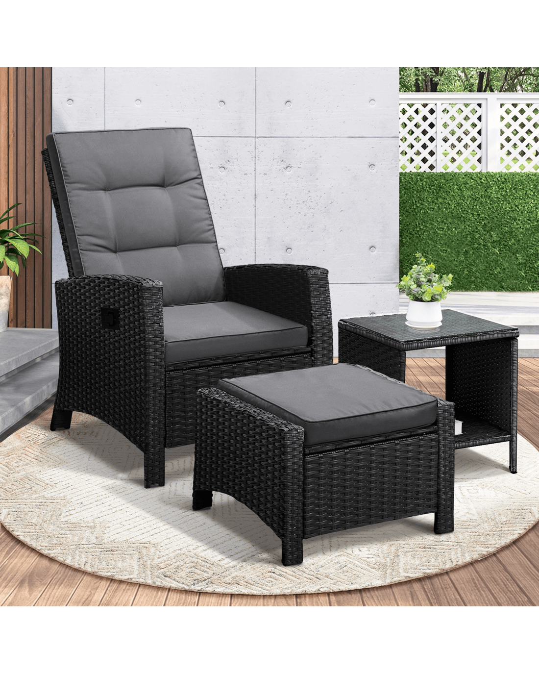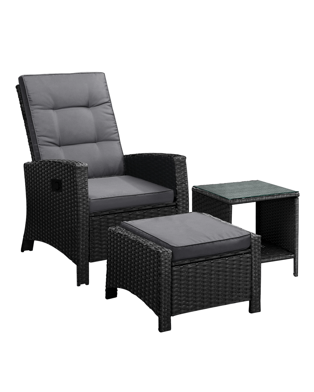 Livsip Recliner Chairs & Table Outdoor Furniture Wicker Sofa Patio Set Garden - Multi