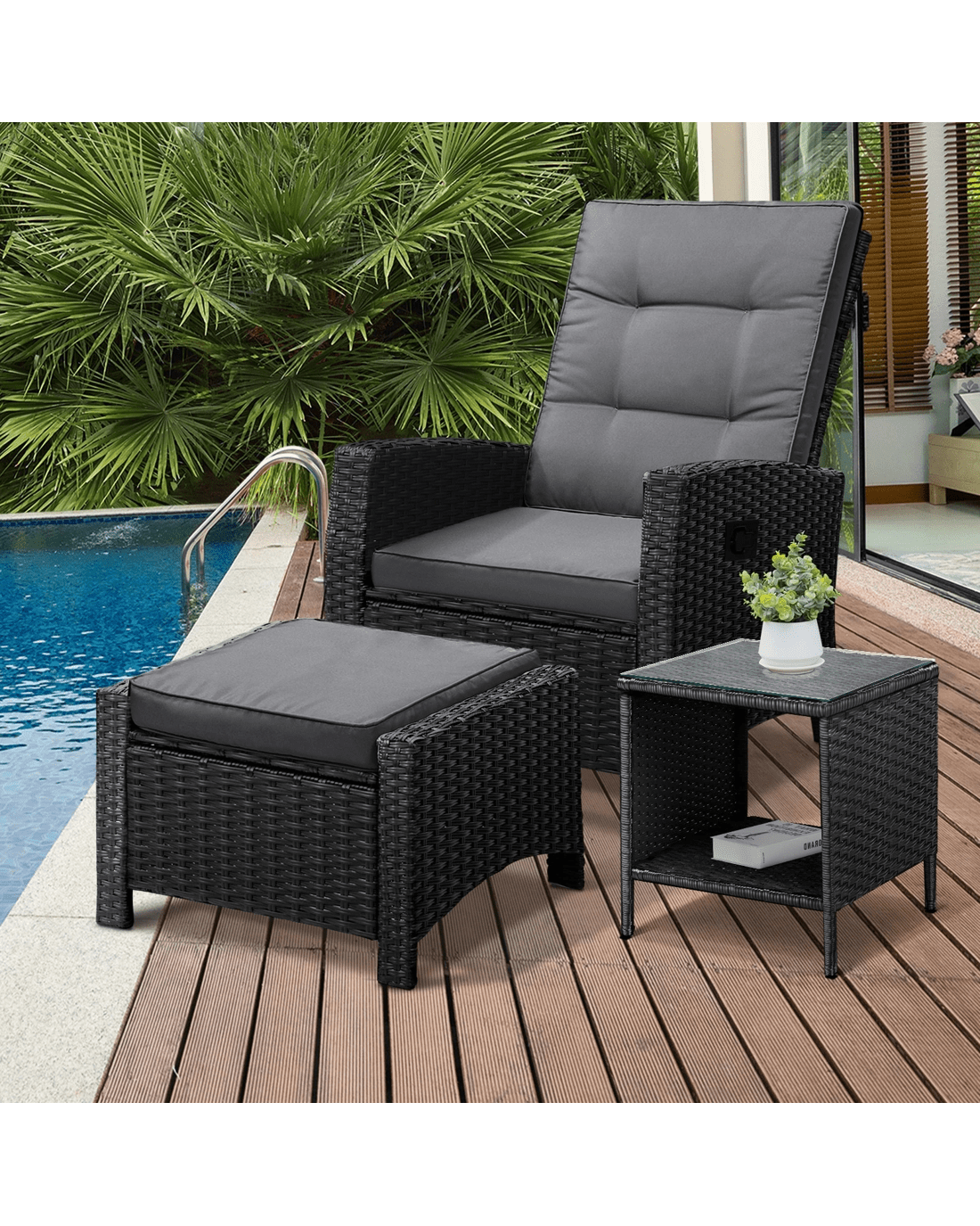 Our Livsip Recliner Chair Set is designed for anyone who loves a good time under the sun, moon and stars. Or perhaps as a favourite set-up for all your preferred leisure pursuits indoors. Whichever is your fancy, the recliner chair set is all about chilling out in style.