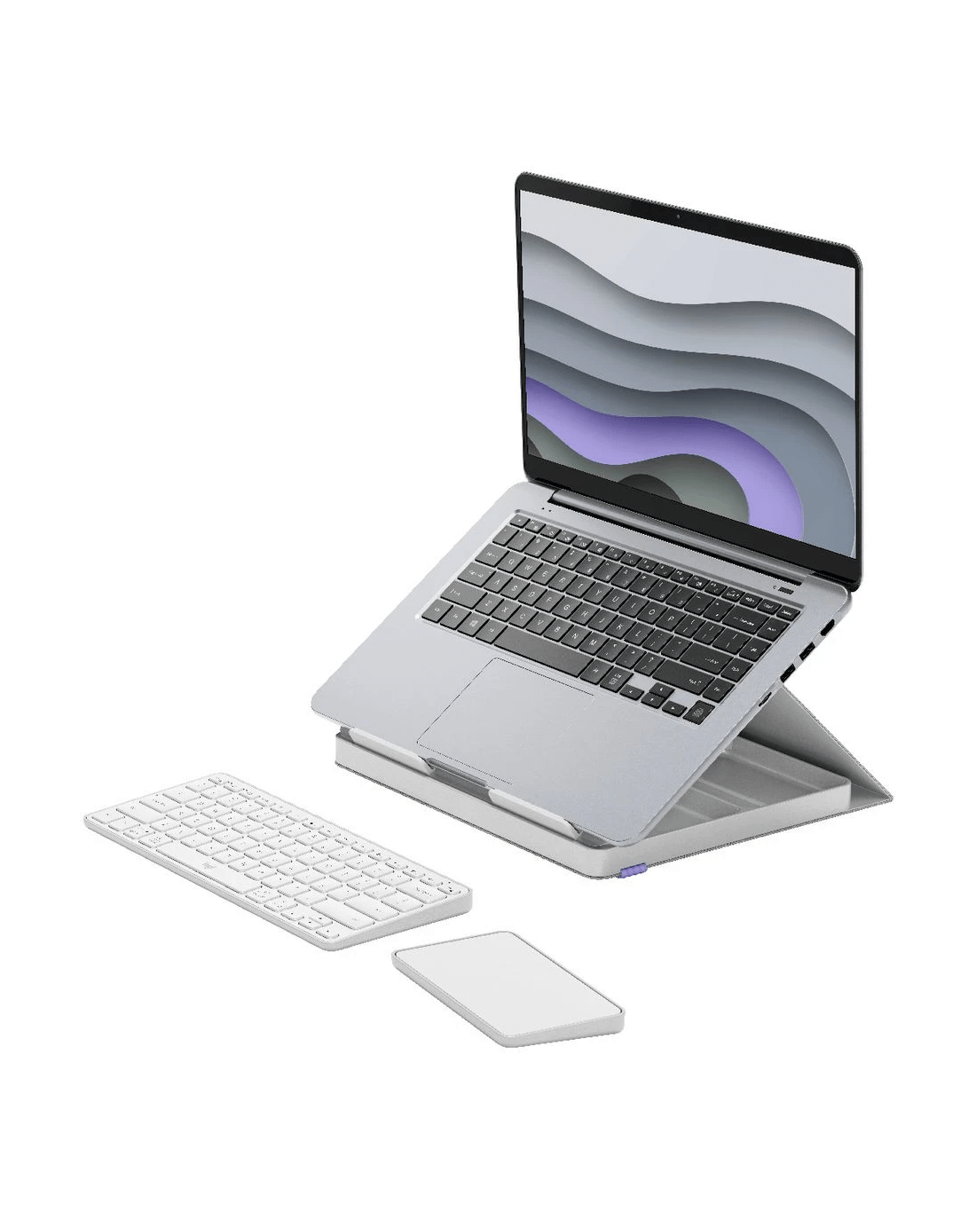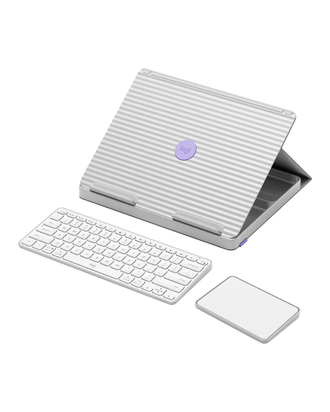 The Logitech Casa Pop-Up Desk has all you need to work from home in one compact kit, with a wireless keyboard, wireless touchpad and a book-like case that transforms into a laptop stand. The laptop holder supports any laptop from 10" to 17"^, plus, each device connects to multiple OS via Bluetooth Low Energy. You decide where comfy, focused work happens and when the workday is done, place this folding desk out of sight, out of mind.