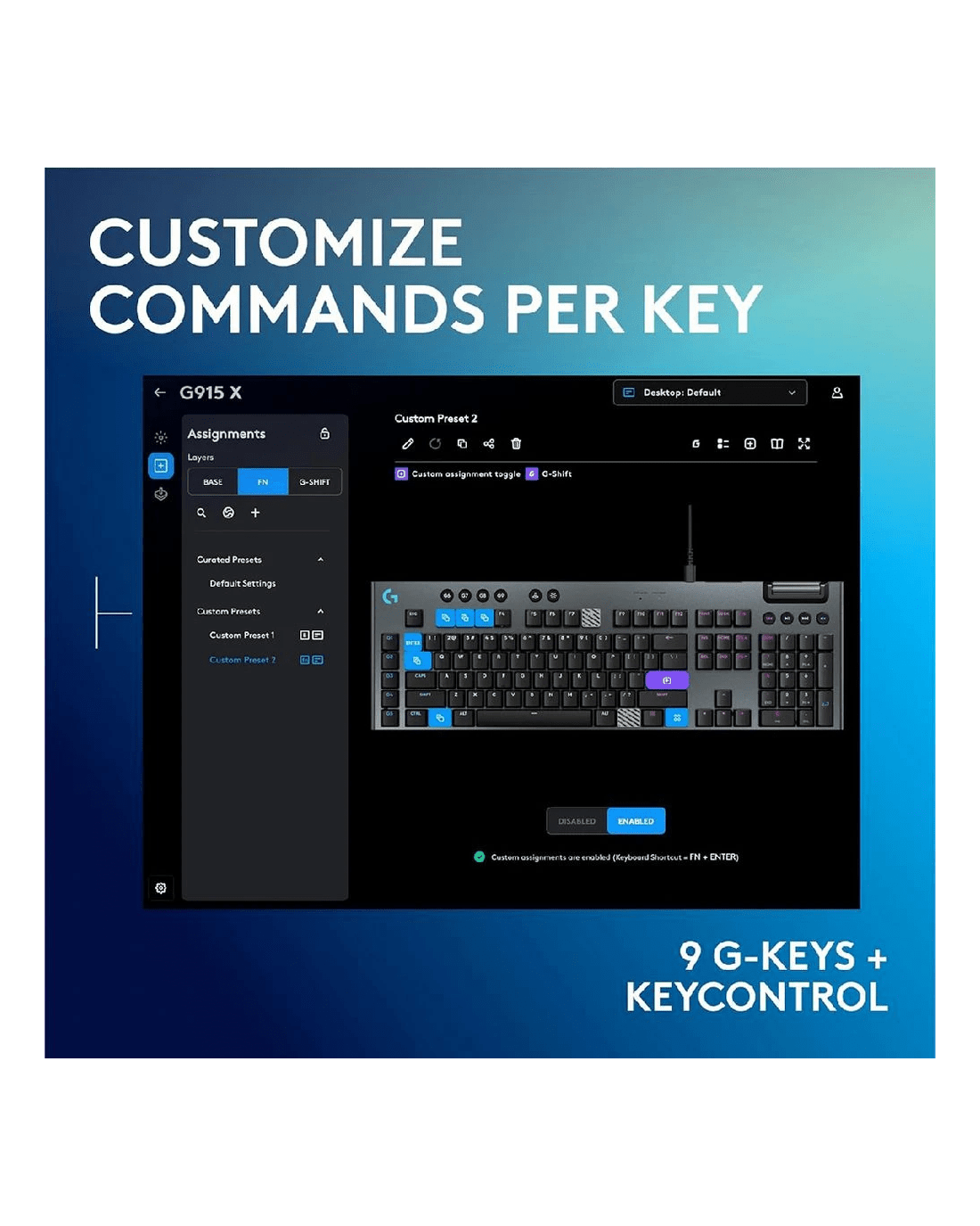 Play games with precision using this Logitech G915 X Gaming Keyboard. It has GL mechanical switches for satisfying feedback in every move you make, and KEYCONTROL technology, which allows you to set up to 15 functions per key.
