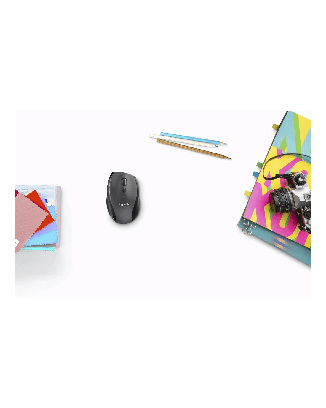The Logitech M705 Marathon Mouse has a sculpted design to keep your hands in a naturally comfortable position. It has laser tracking for smooth, responsive cursor control and includes 3 thumb buttons for web browsing, app switching and photo viewing.