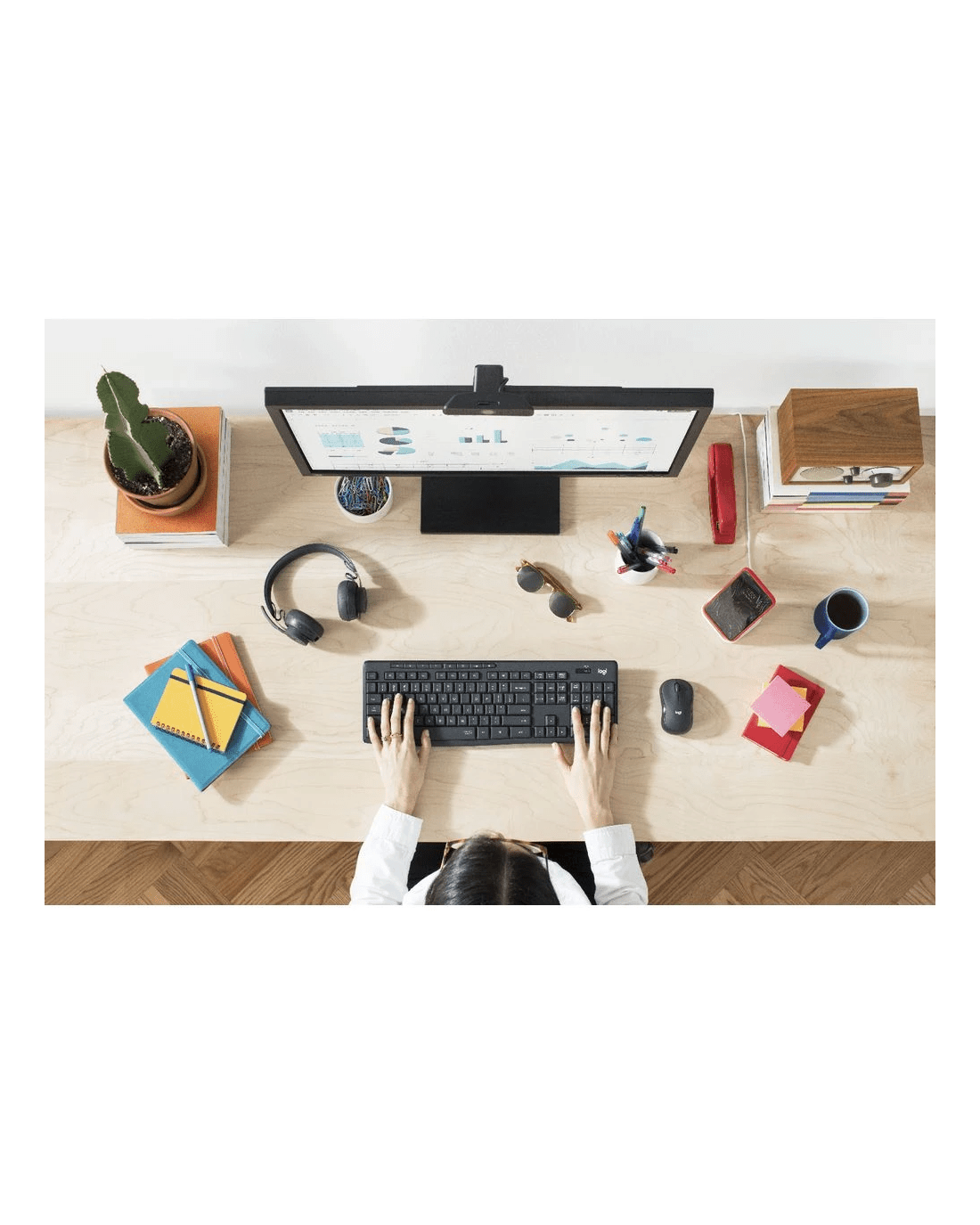 - The combo features a Logitech Keyboard and Mouse.