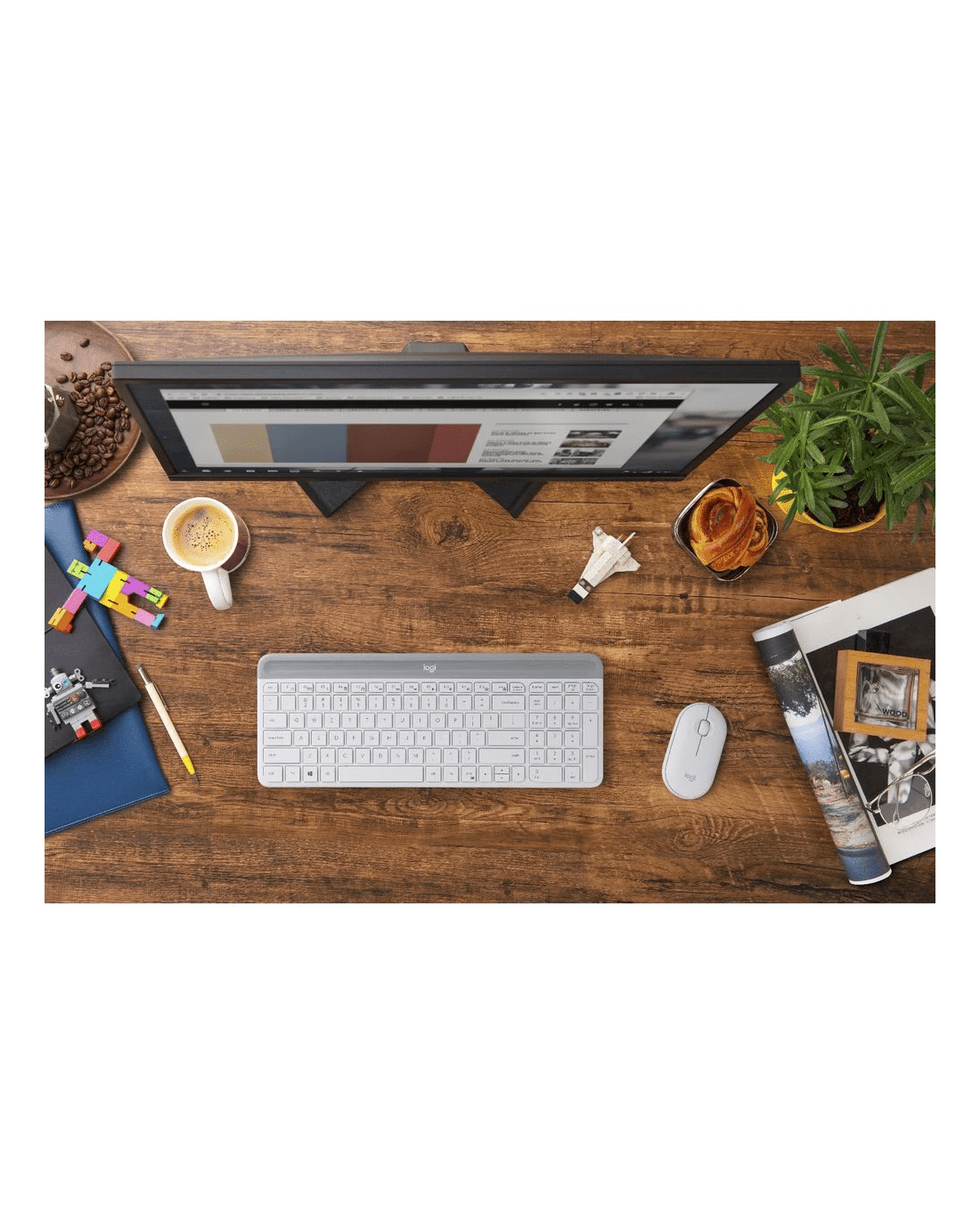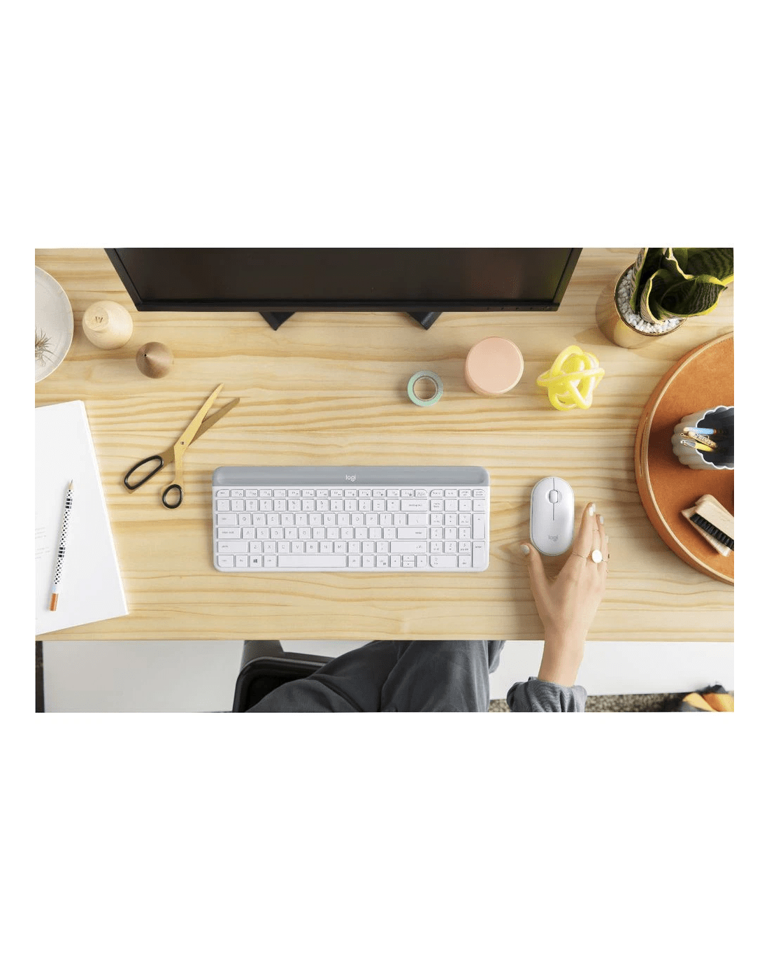 The Logitech Wireless Mouse and Keyboard combo is great for those looking for a more minimalist way to do their work. Both are noise reduced for a quiet experience and use a USB receiver to create a strong, 2.4 GHz wireless connection with a range of up to 10 metres.