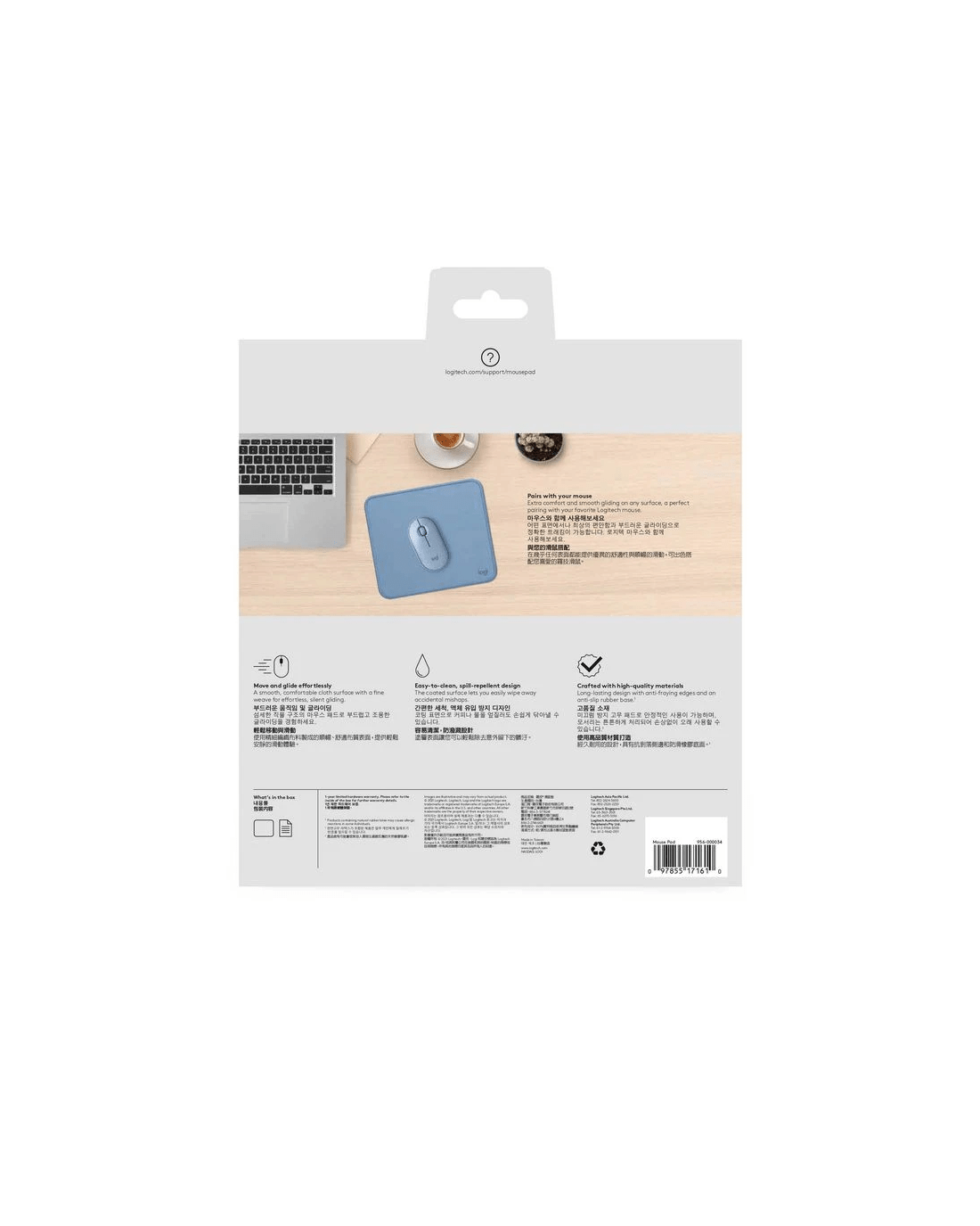 This Logitech Mouse Pad is a soft, smooth, non-slip mouse pad made from high quality materials. The fine weave material offers a silent, friction-free glide, enhancing your work or gaming experience, while the spill-proof coating withstands accidental mishaps.