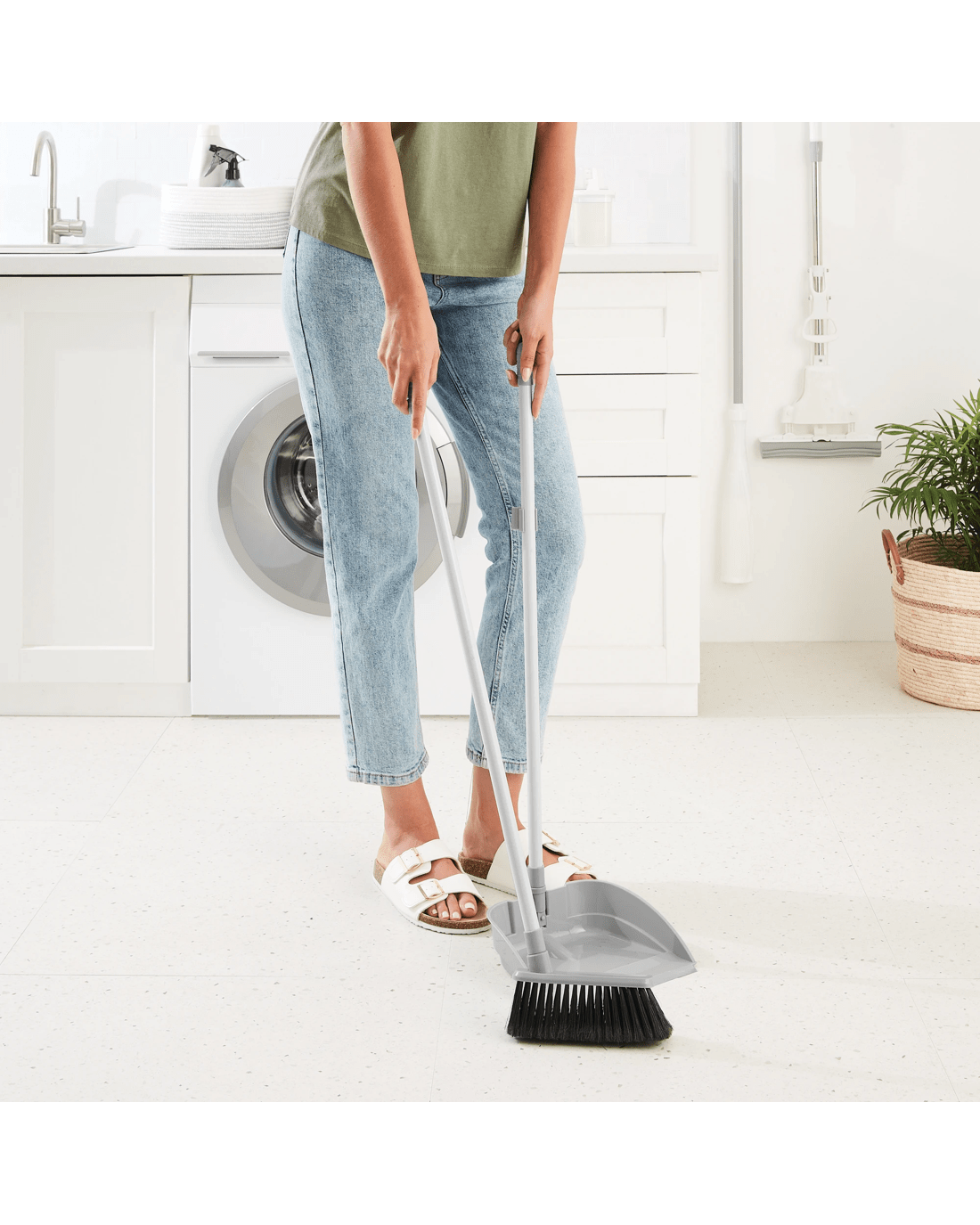 Sold by KmartLong Handled Pan and Broom - Grey