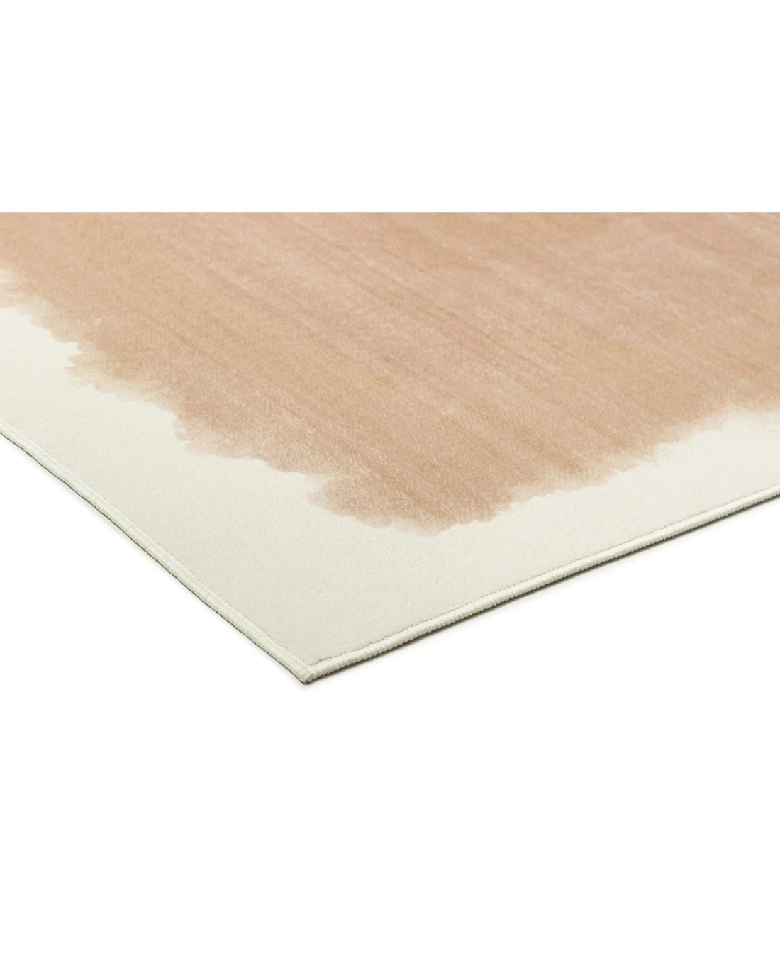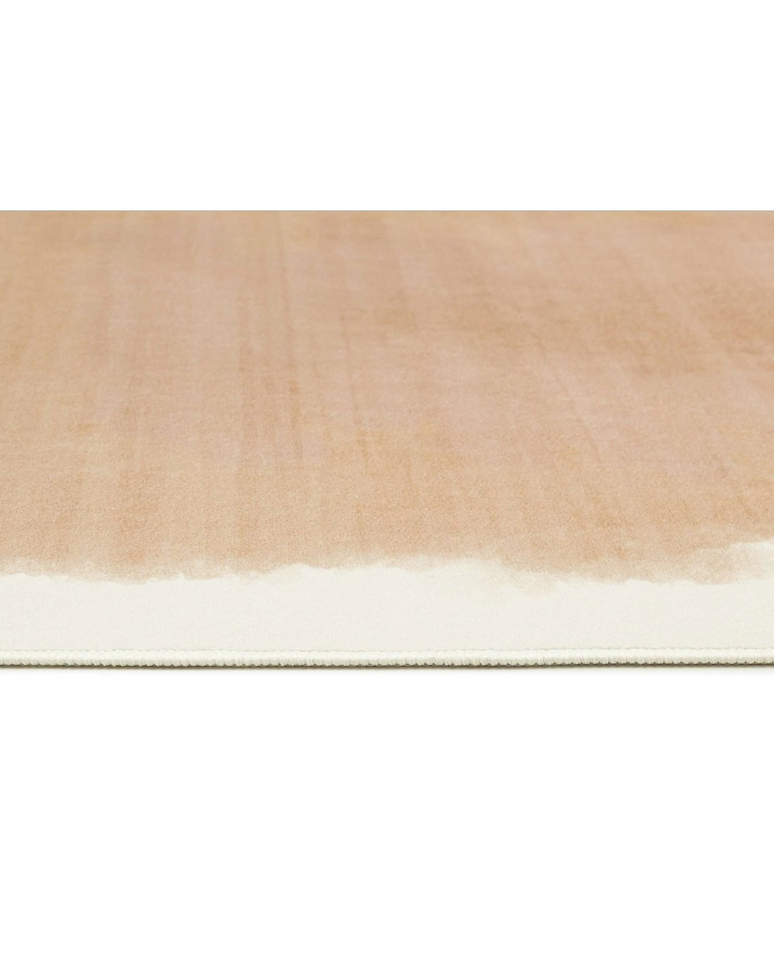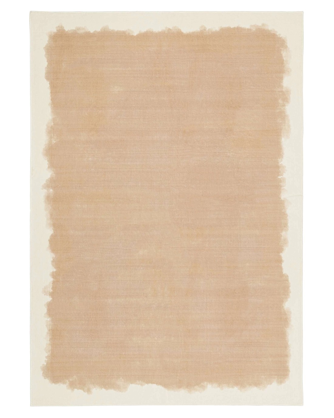 Brindis is a smooth machine washable foldable flatweave rug with a stunning beige-toned watercolour-inspired bordered design.