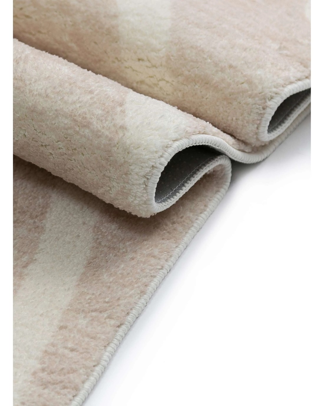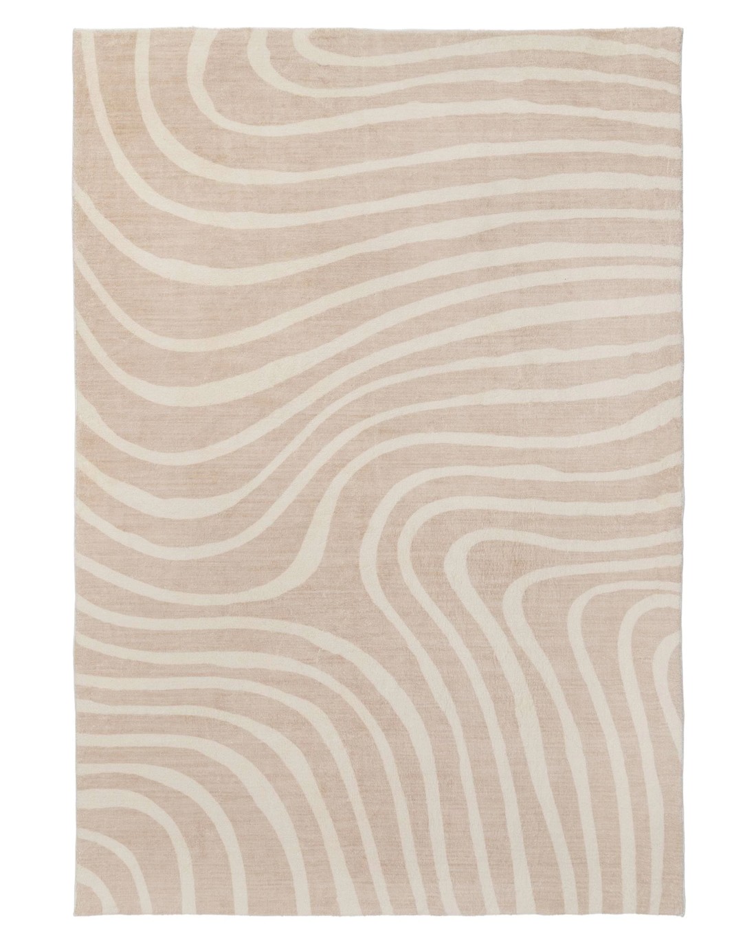 An abstract pattern in a light ivory curved wavy line on a neutral beige cream minimal background. A uniquely modern and contemporary rug design to accent any space and decor.