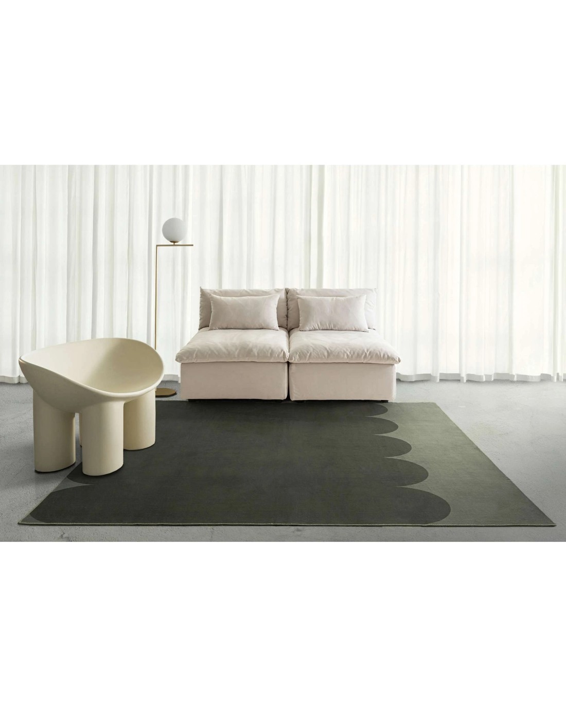 Inuya is a smooth machine washable foldable flatweave rug in two tones of dark green, with a curvy pattern that we’ve lovingly coined ‘paddle pop’.