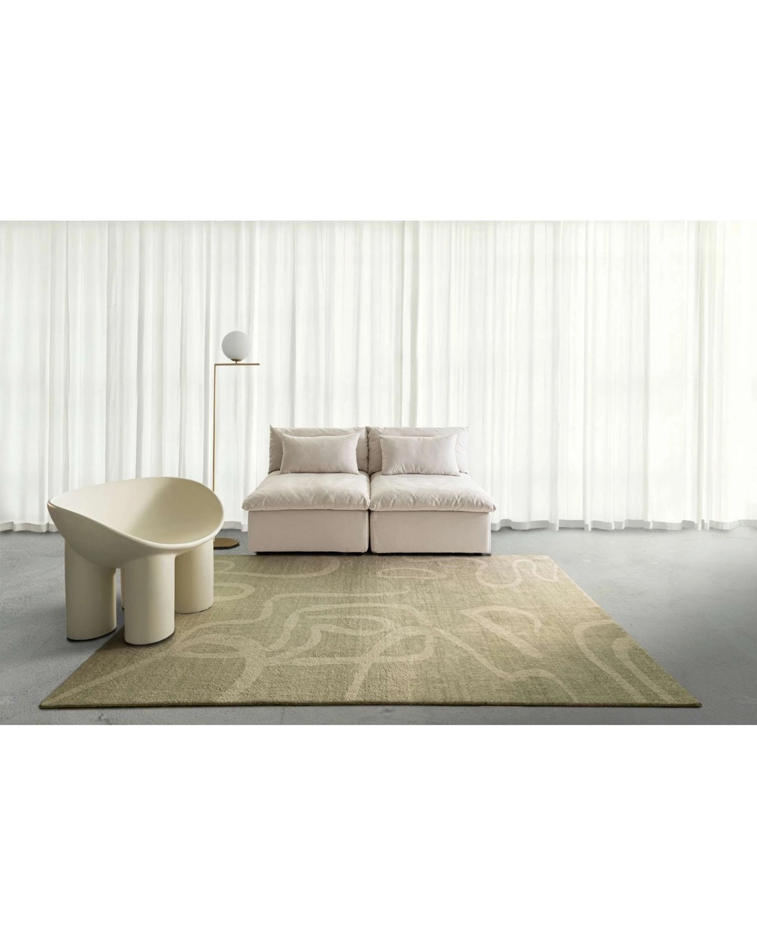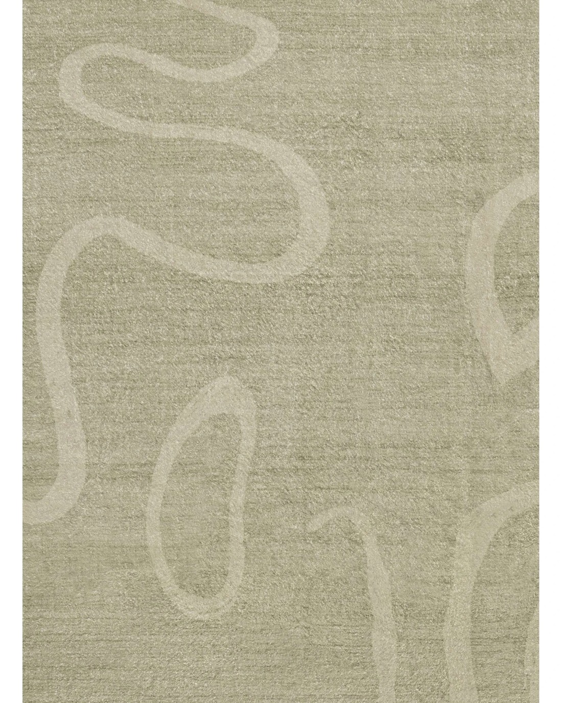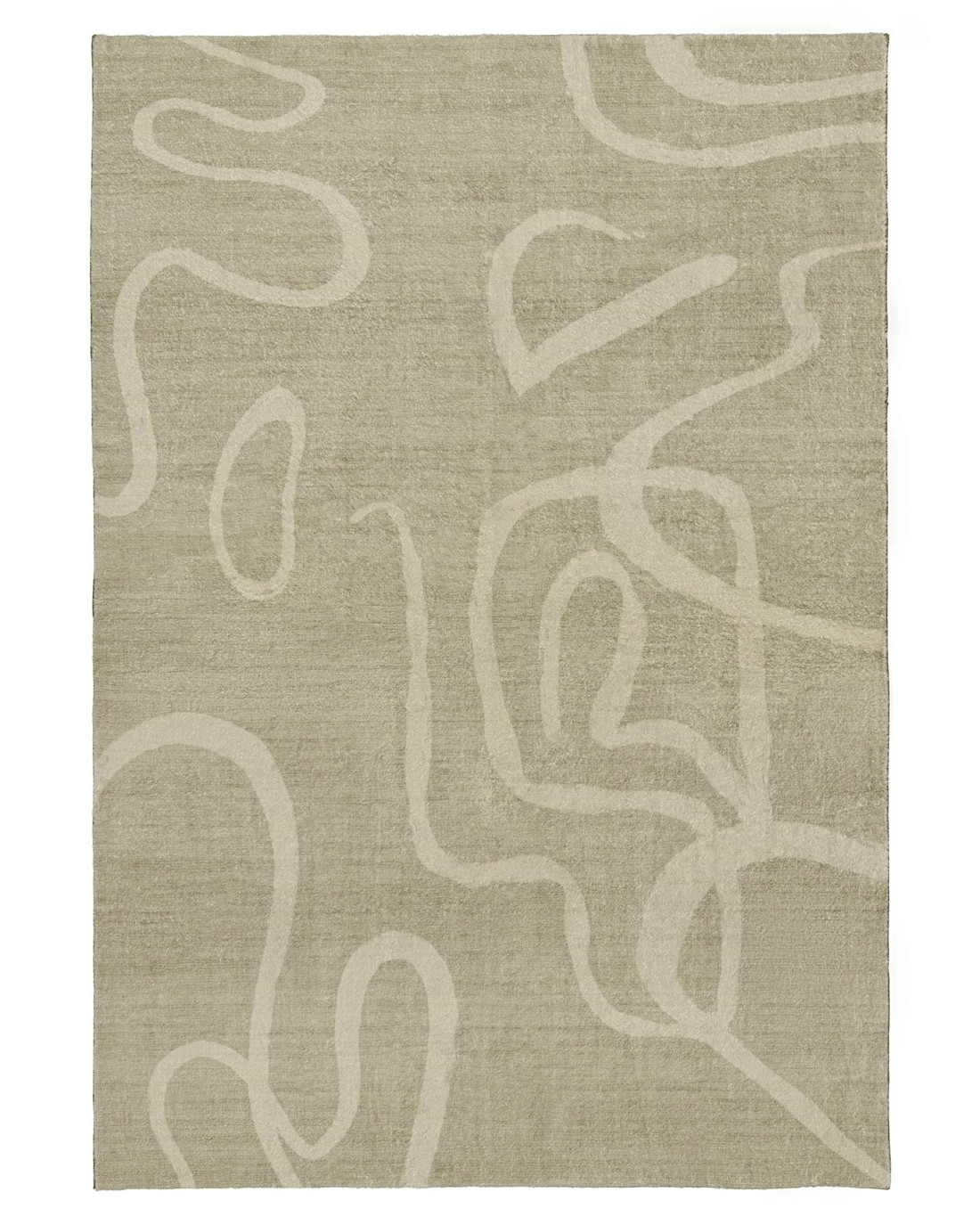 Nepou is a soft and plush machine washable foldable rug in muted olive green tones and an organic hand-drawn design. Silky smooth to the touch and with a luxurious and plush 8mm pile.