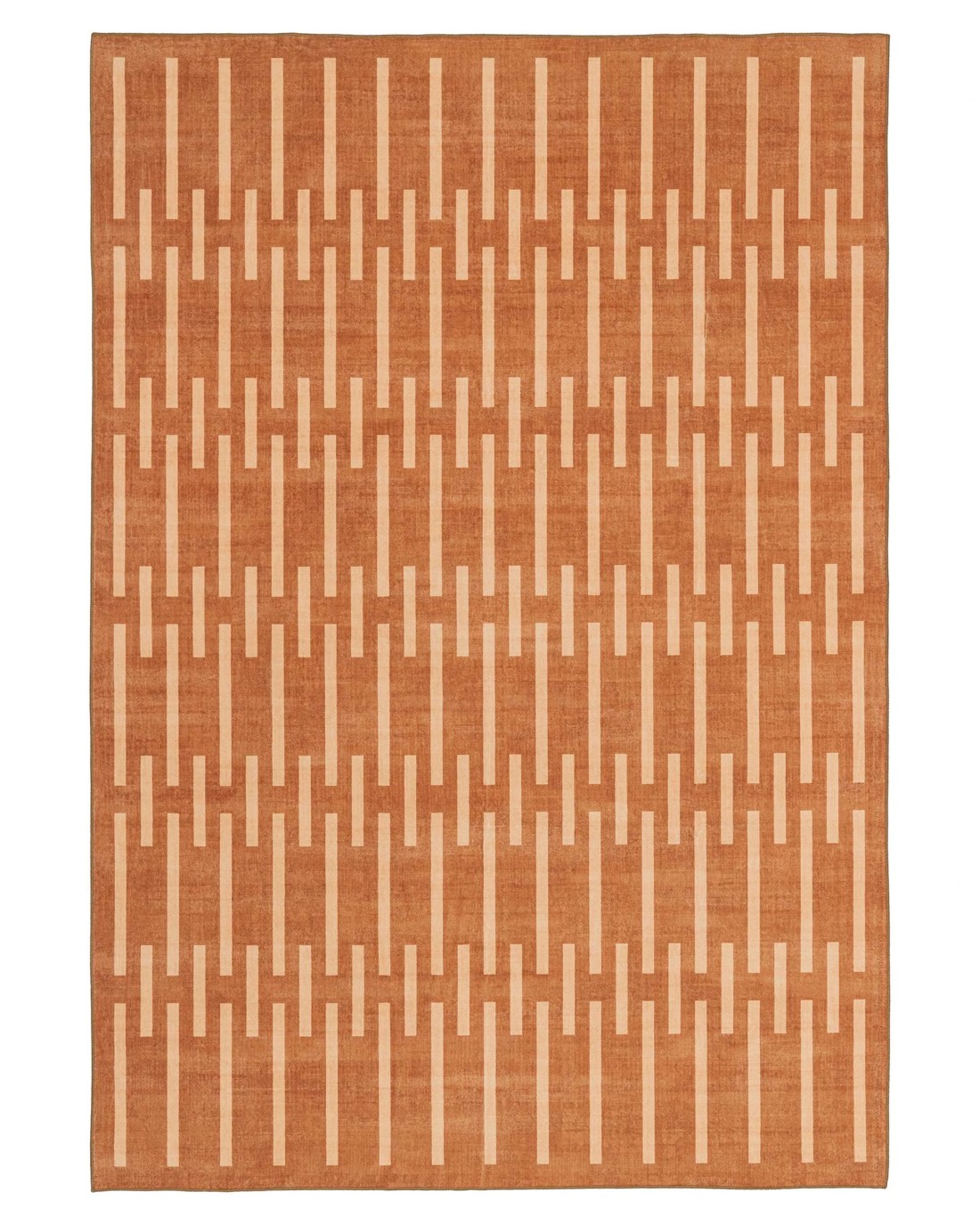 Tudor is a smooth machine washable foldable flatweave rug with a unique abstract warm brown rust-toned pattern.