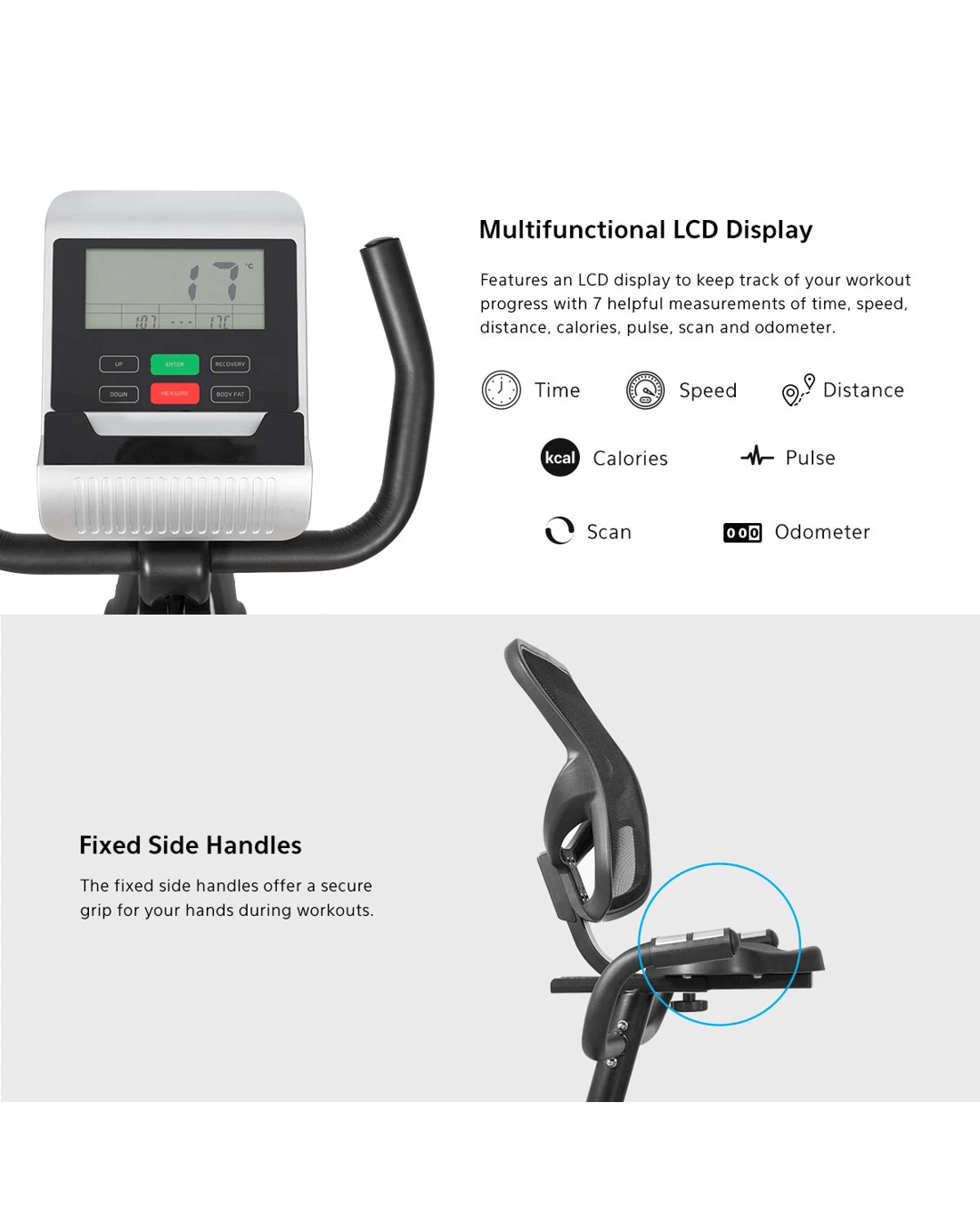 Shows: Time, Speed, Scan, Distance, Calories, Pulse, Odometer