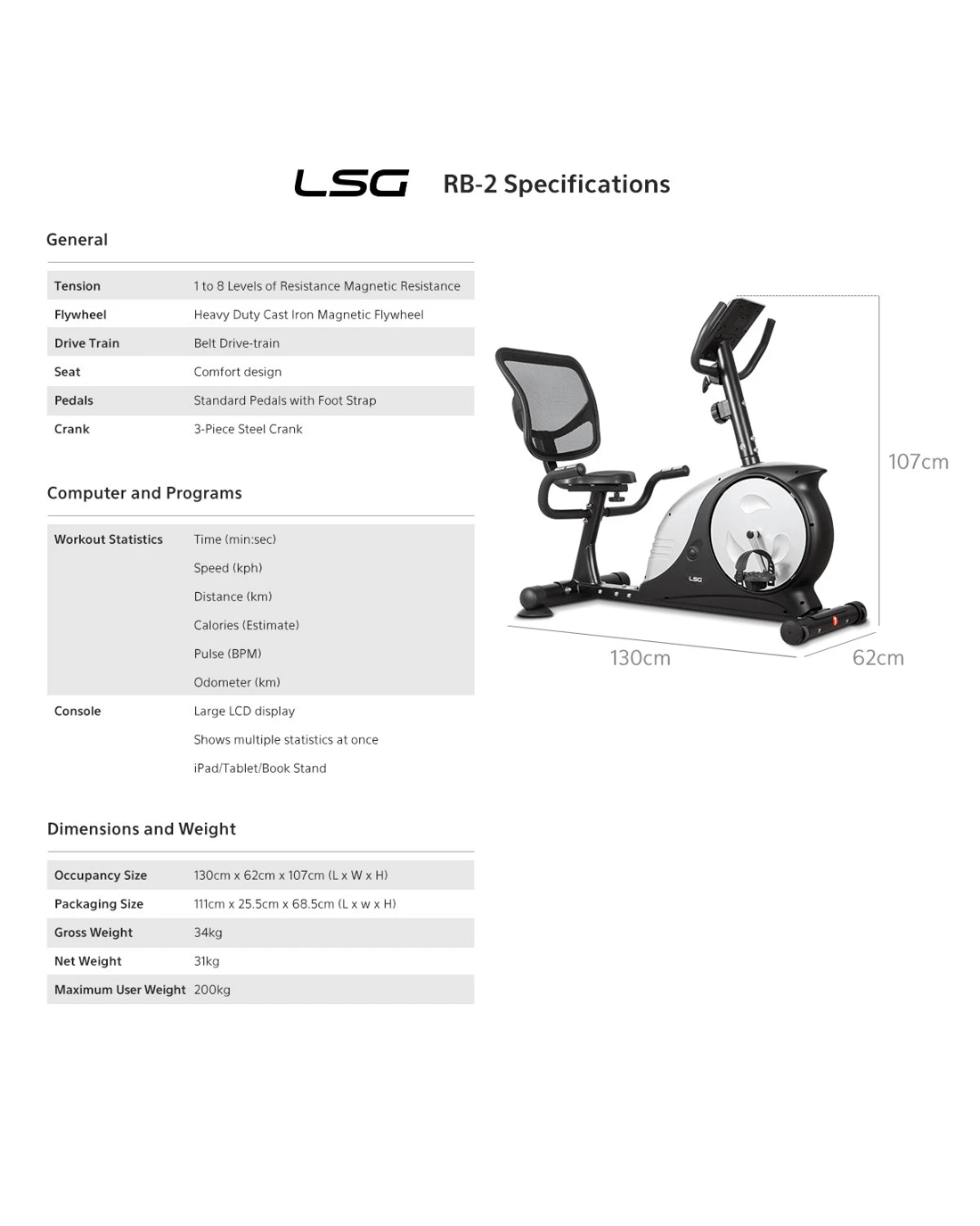 Maximum User Weight: 200kg