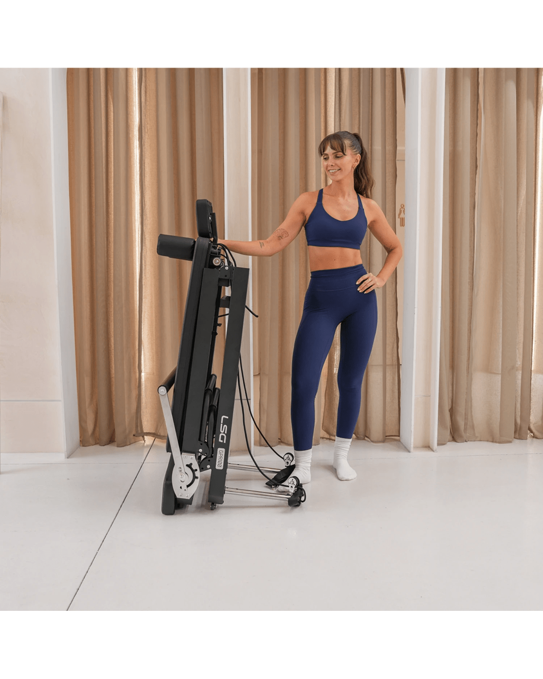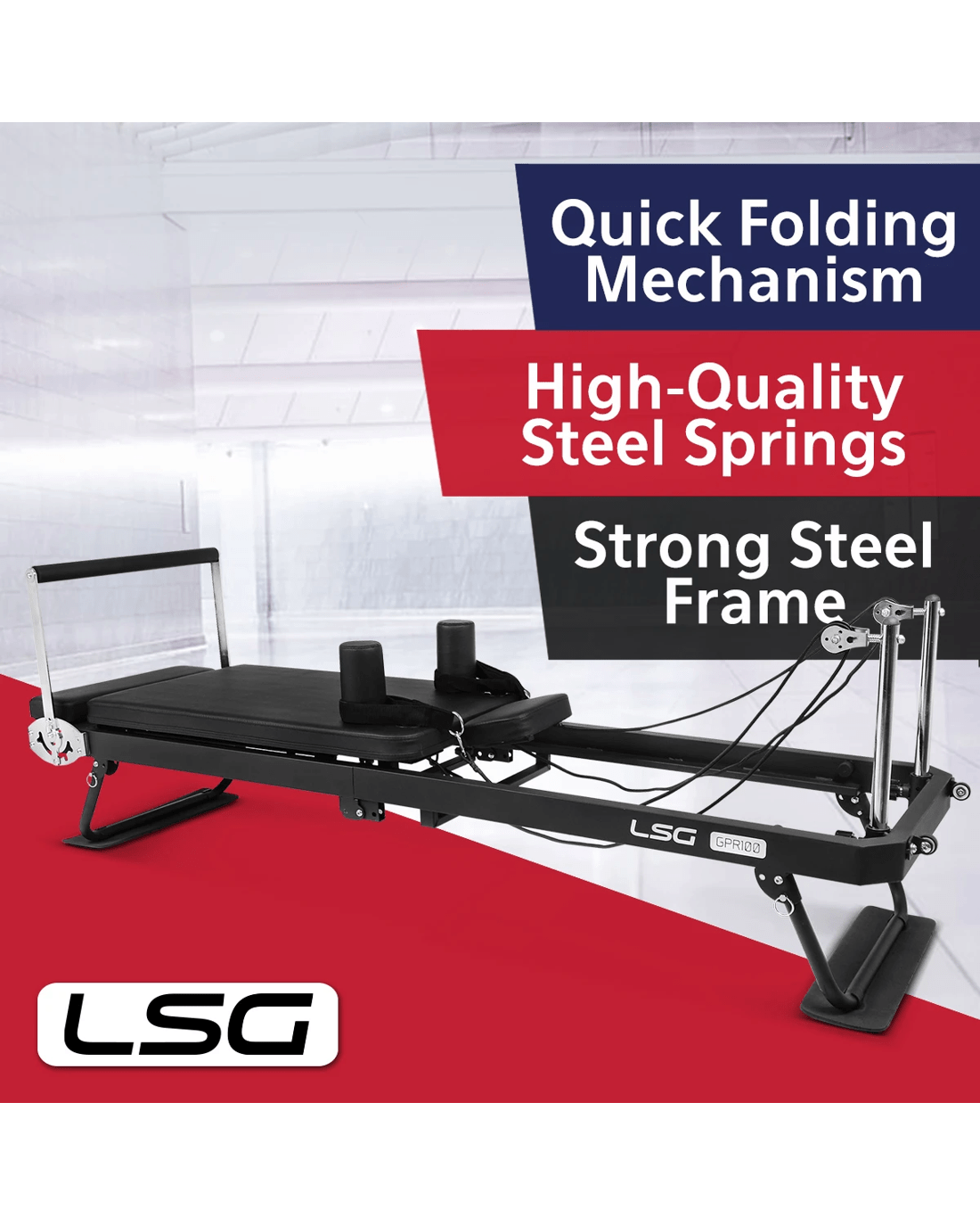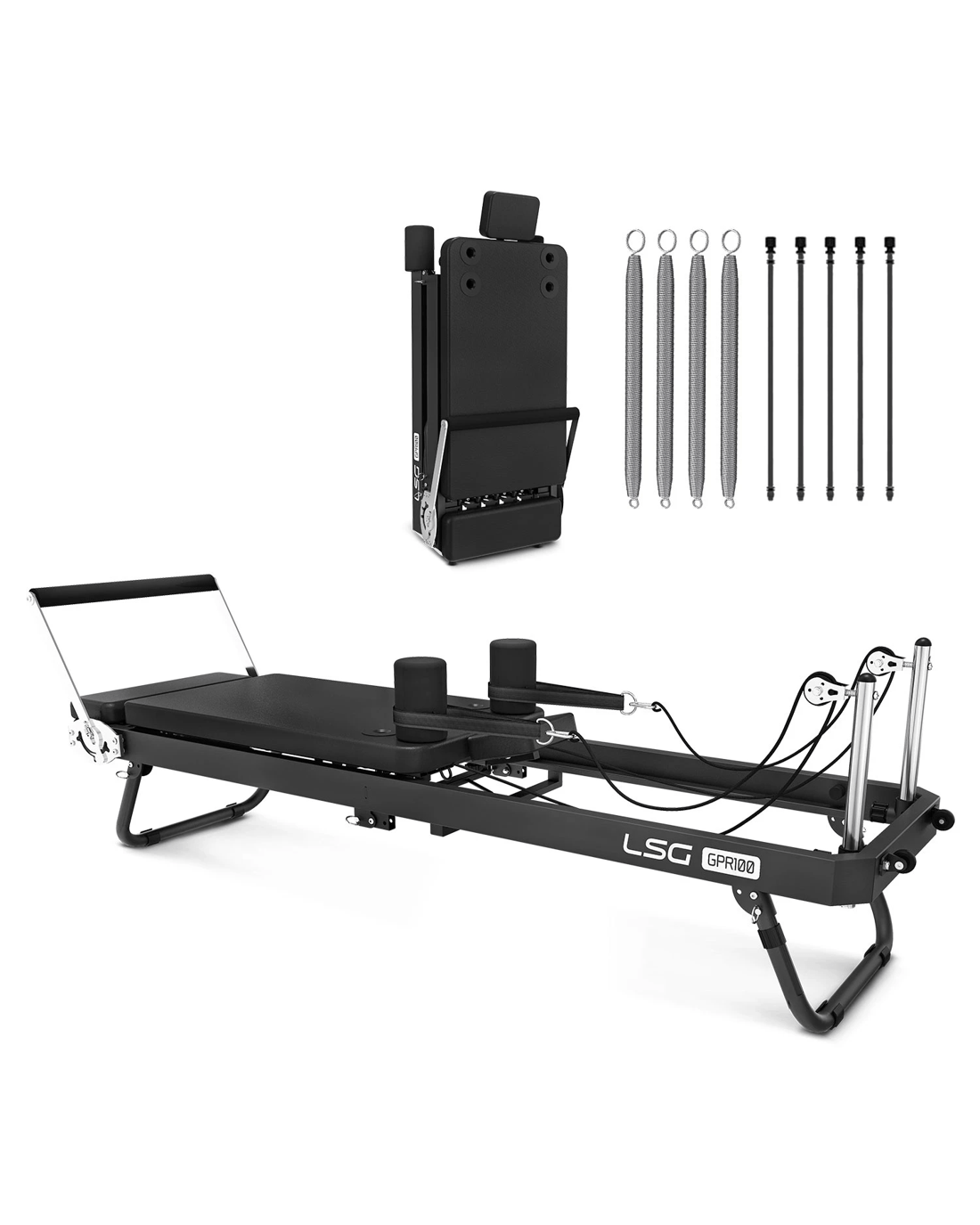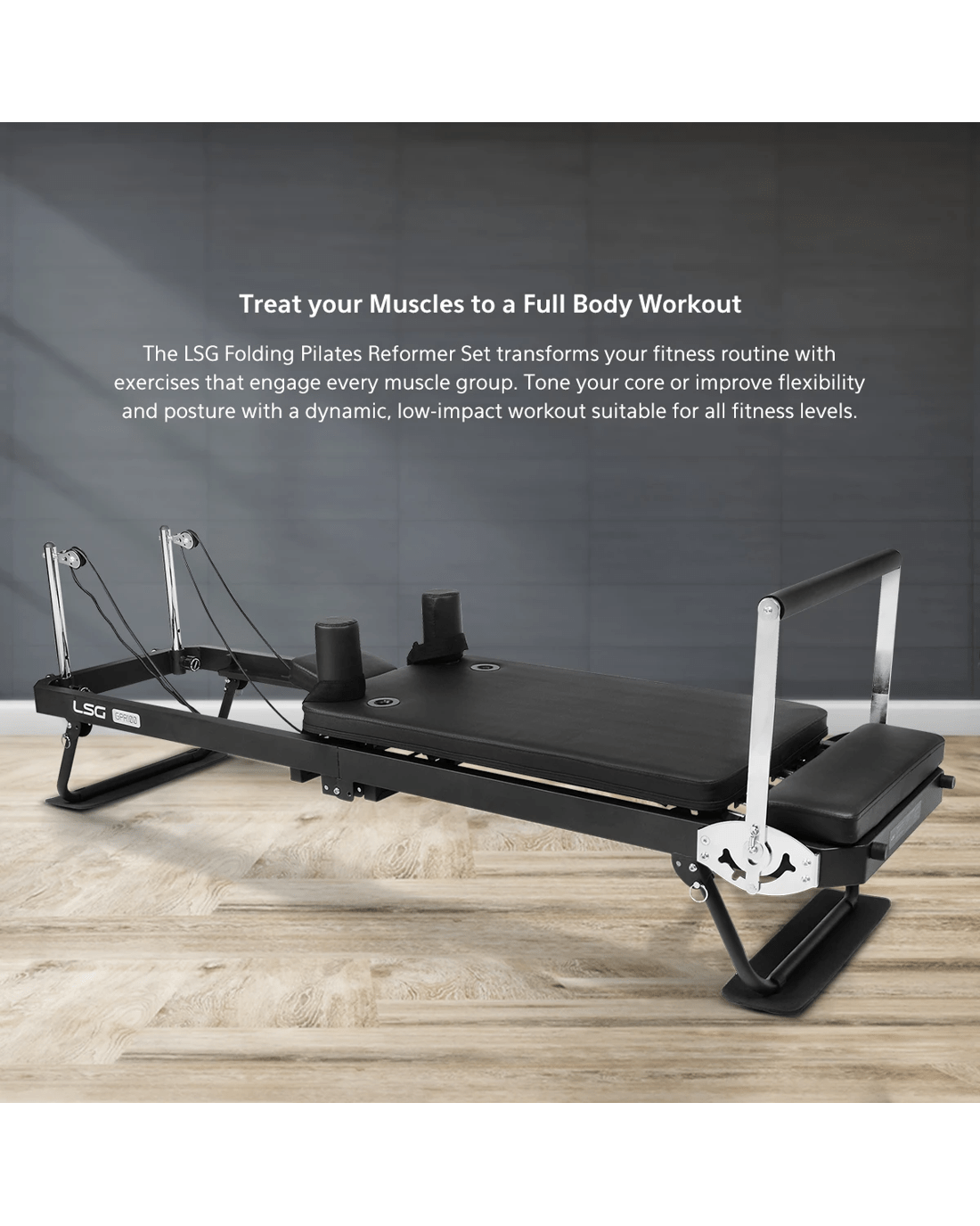 Deliver a professional-grade Pilates experience to your home with the LSG Folding Pilates Reformer Set, designed to deliver a high-quality workout in a compact, convenient package. This reformer supports a wide range of exercises to enhance flexibility, strength and core stability, suitable for all fitness levels. With its innovative folding design, high-quality construction and adjustable features, this reformer set offers a versatile and space-saving solution for a full-body workout.