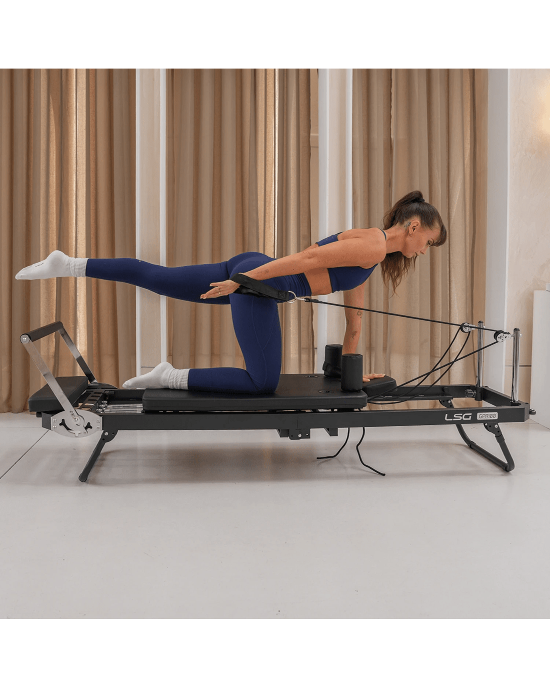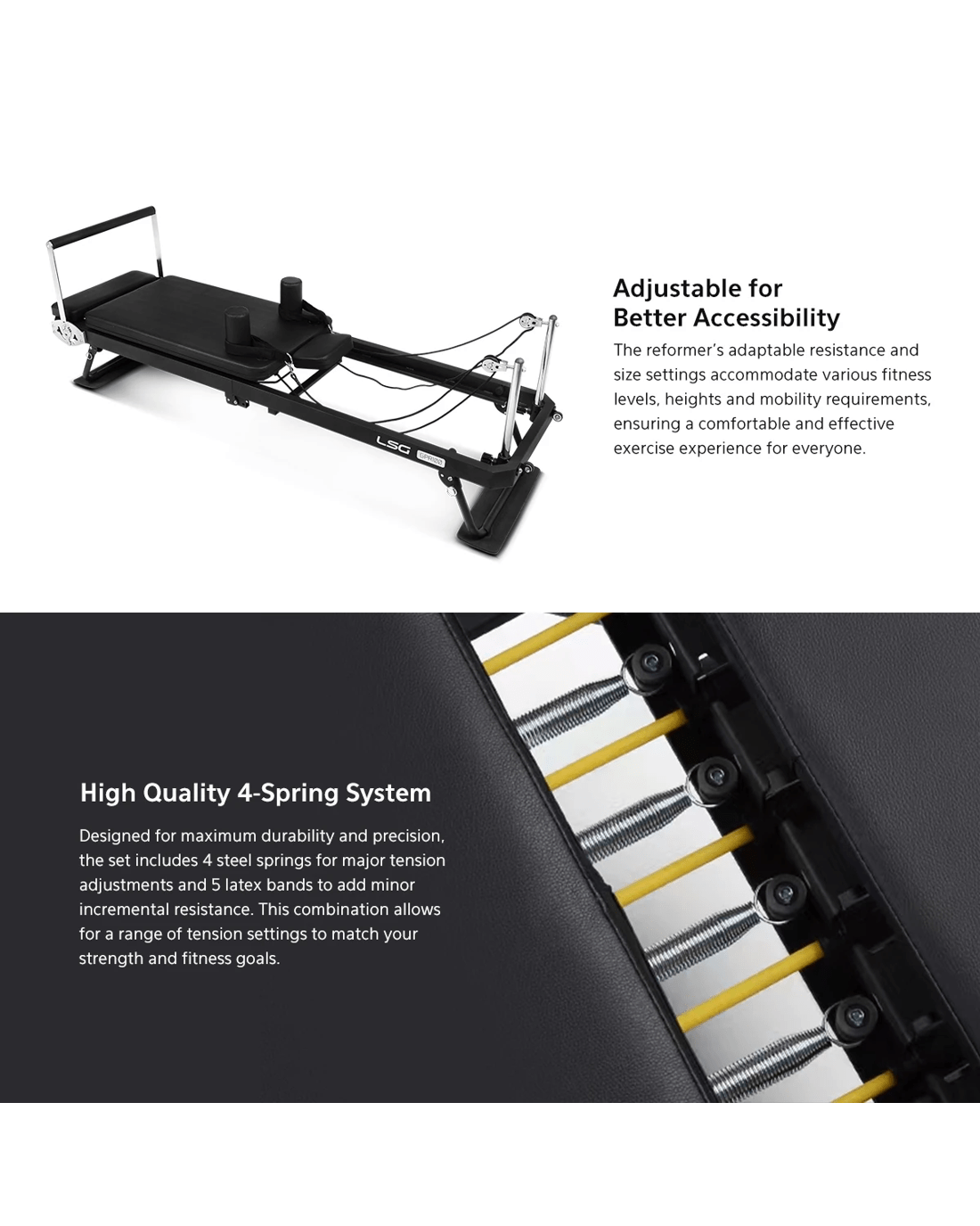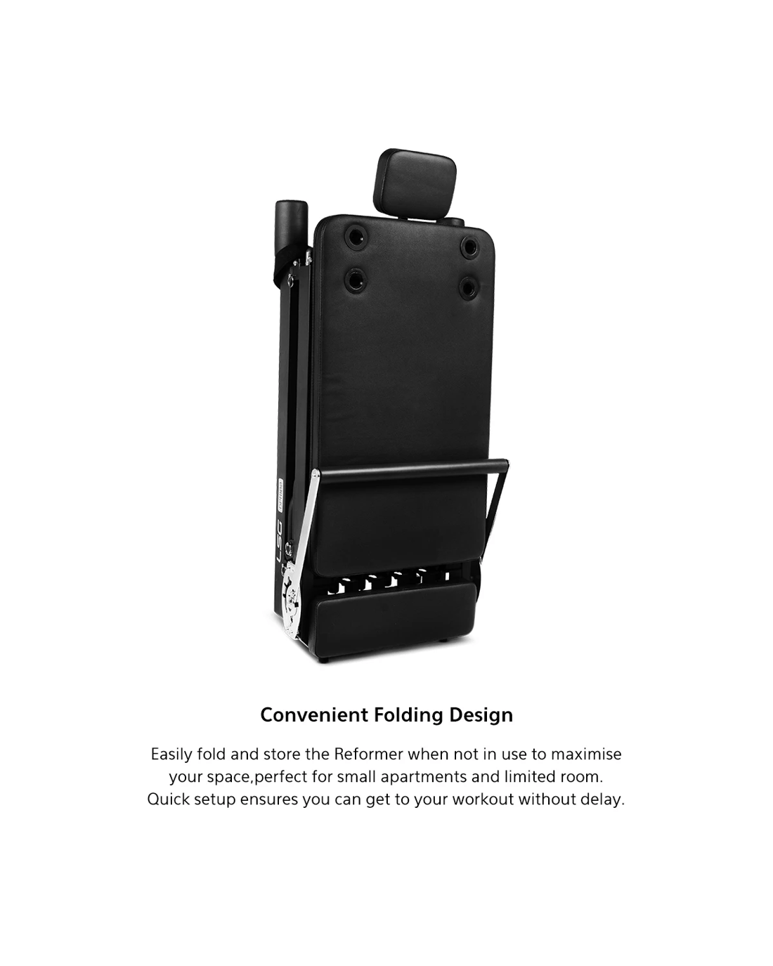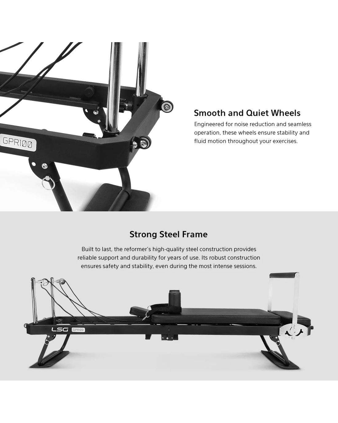 Deliver a professional-grade Pilates experience to your home with the LSG Folding Pilates Reformer Set, designed to deliver a high-quality workout in a compact, convenient package. This reformer supports a wide range of exercises to enhance flexibility, strength and core stability, suitable for all fitness levels. With its innovative folding design, high-quality construction and adjustable features, this reformer set offers a versatile and space-saving solution for a full-body workout.
