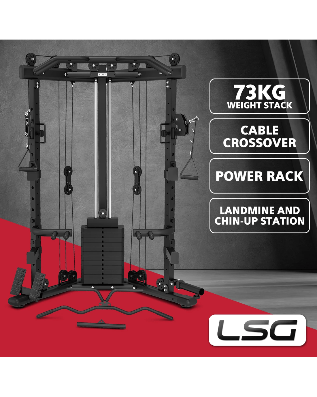LSG GRK-110 Space Saving Multi Function Rack with 73kg Cable Crossover - Black