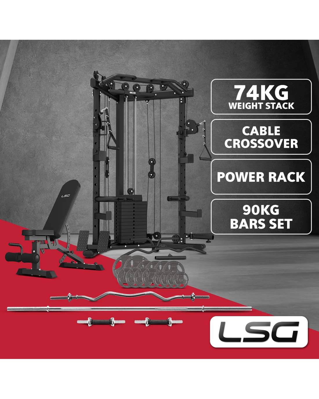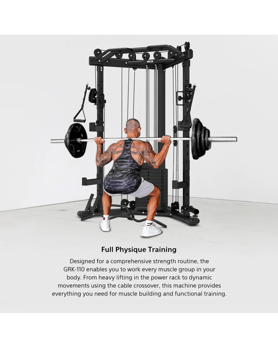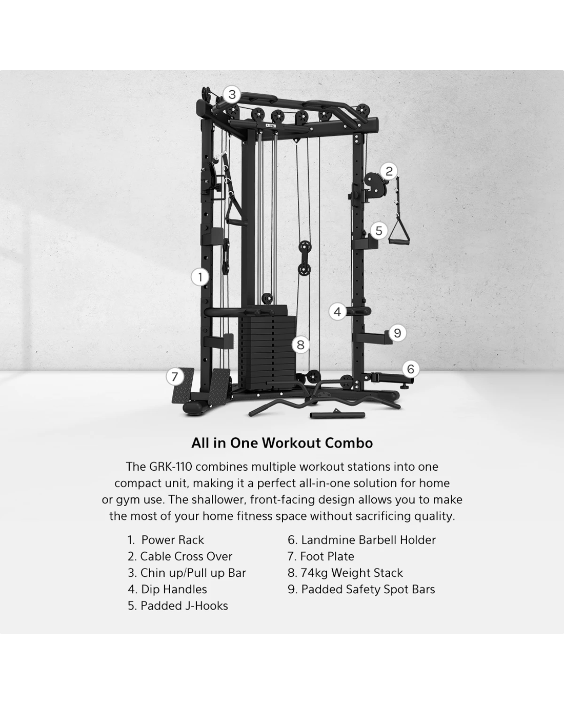 Sold by ActiveGoLSG GRK-110 Space Saving Multi-Function Rack with 74kg Cable Crossover, FID Bench, 90kg Standard Weight Package - Black