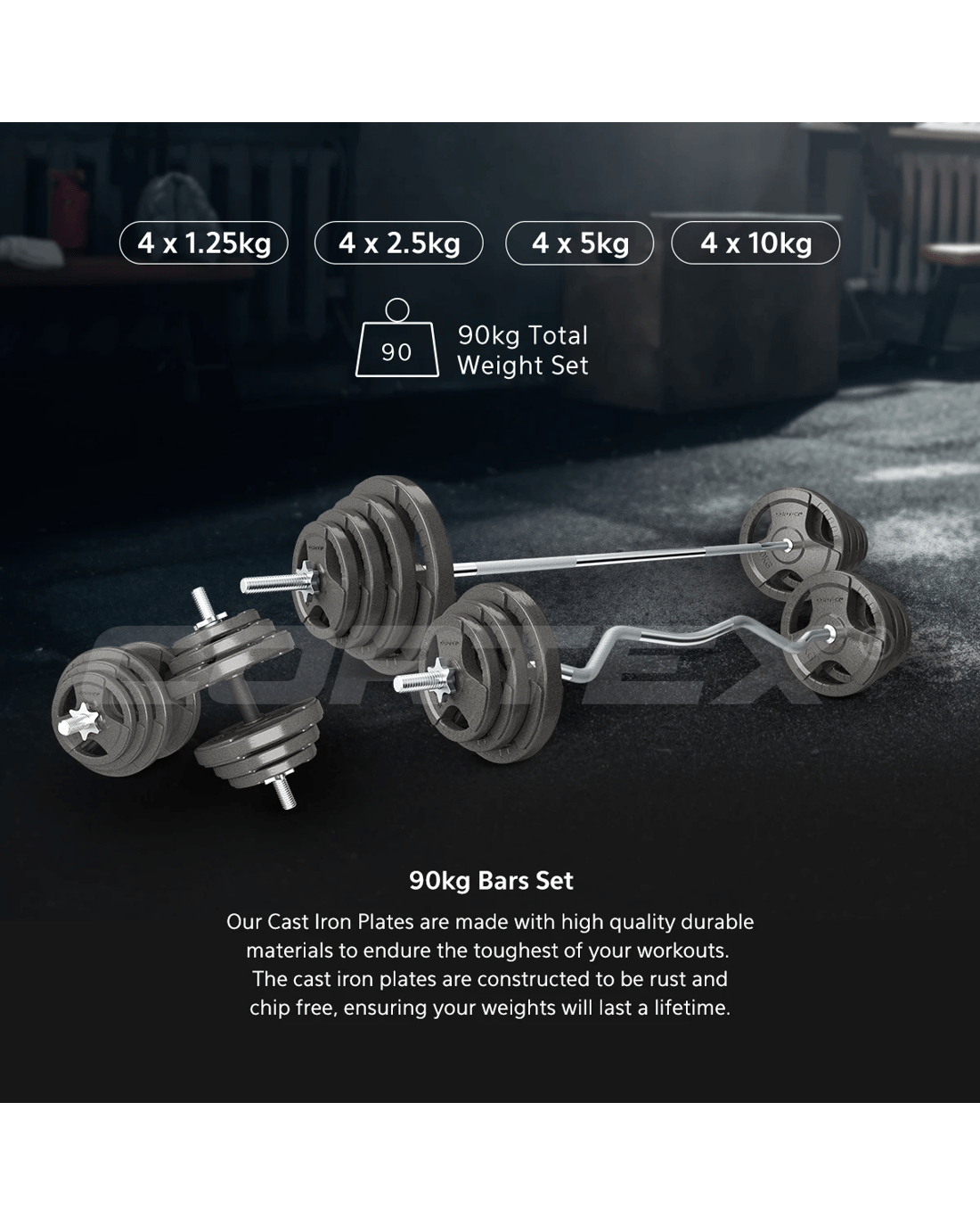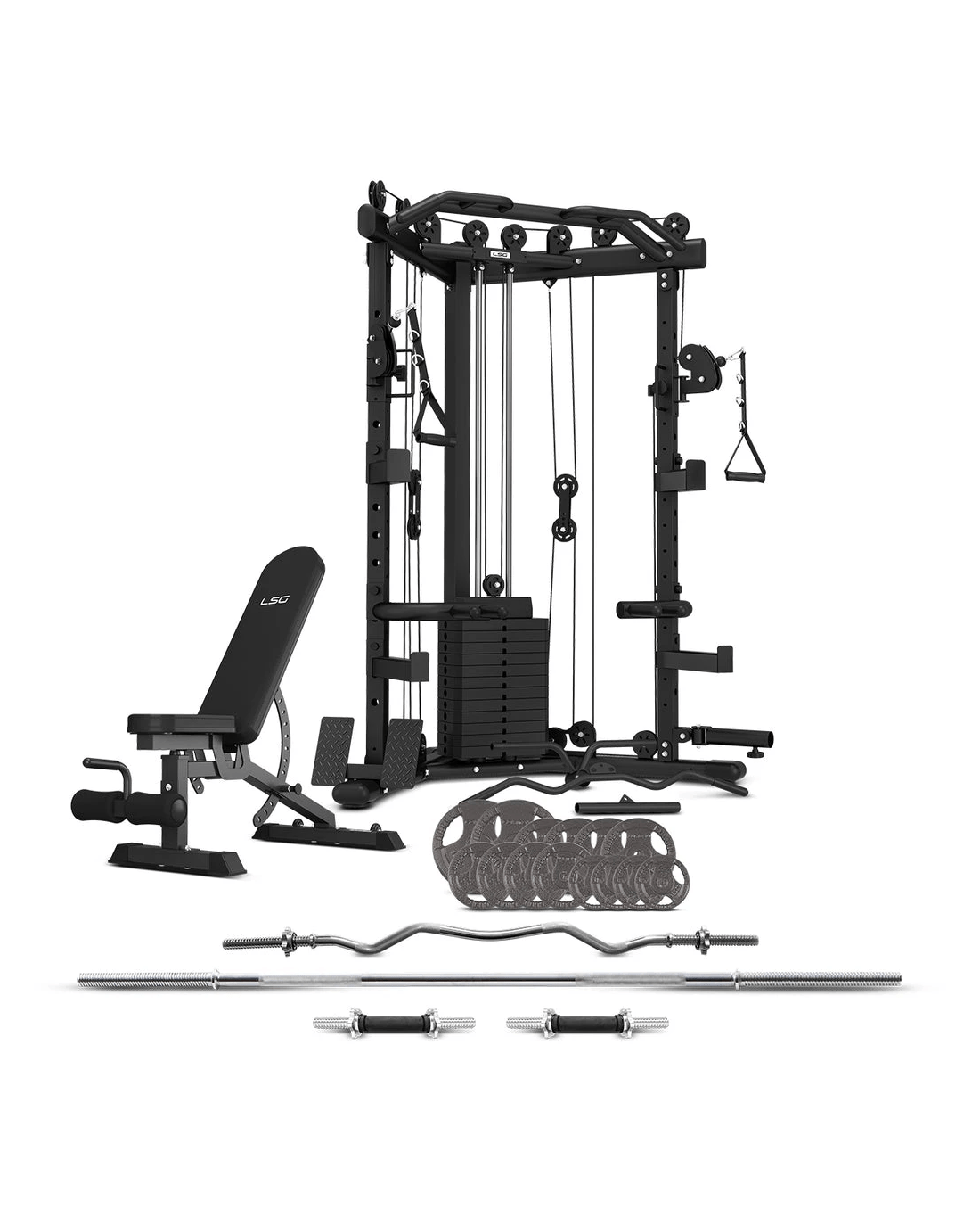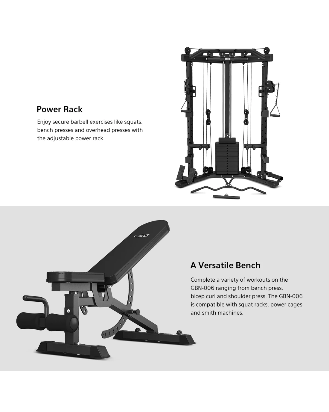 Sold by ActiveGoLSG GRK-110 Space Saving Multi-Function Rack with 74kg Cable Crossover, FID Bench, 90kg Standard Weight Package - Black