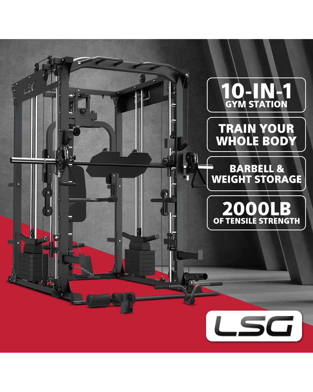 Sold by ActiveGoLSG GRK200 10-in-1 Home Gym Station, Power Rack, Smith Machine and Cable Crossover - Black
