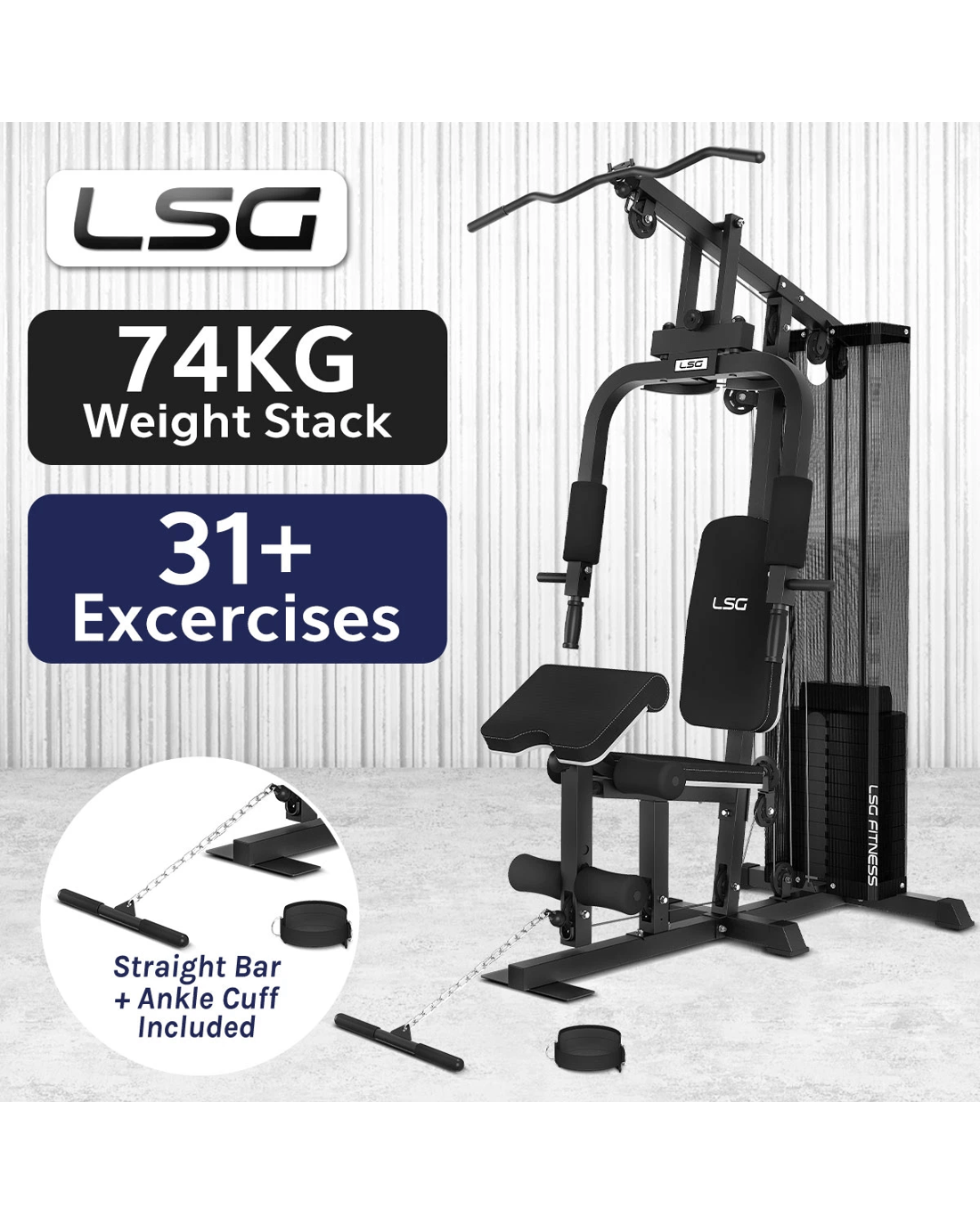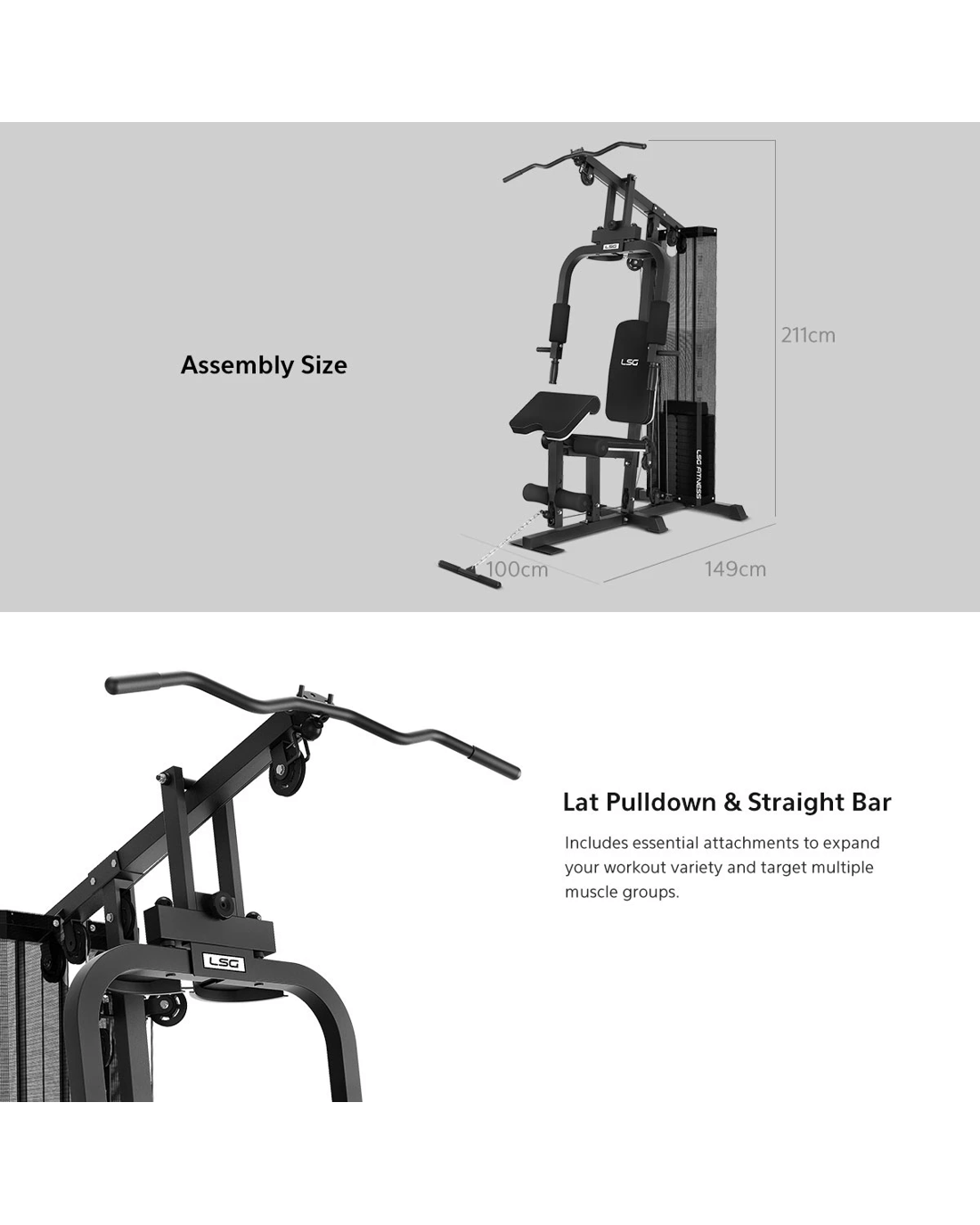 Attachments Lat Pulldown Bar & Straight Bar included