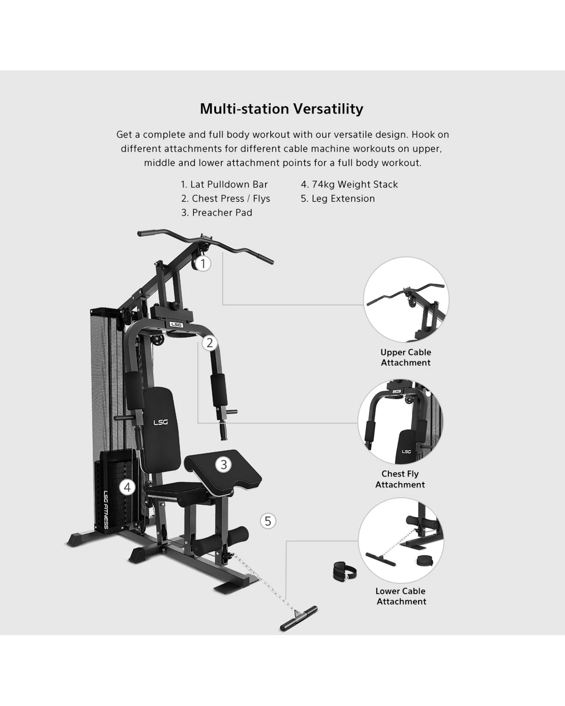 The LSG SSN90 Single Station is a compact, versatile home gym station for building strength and toning every major muscle group.