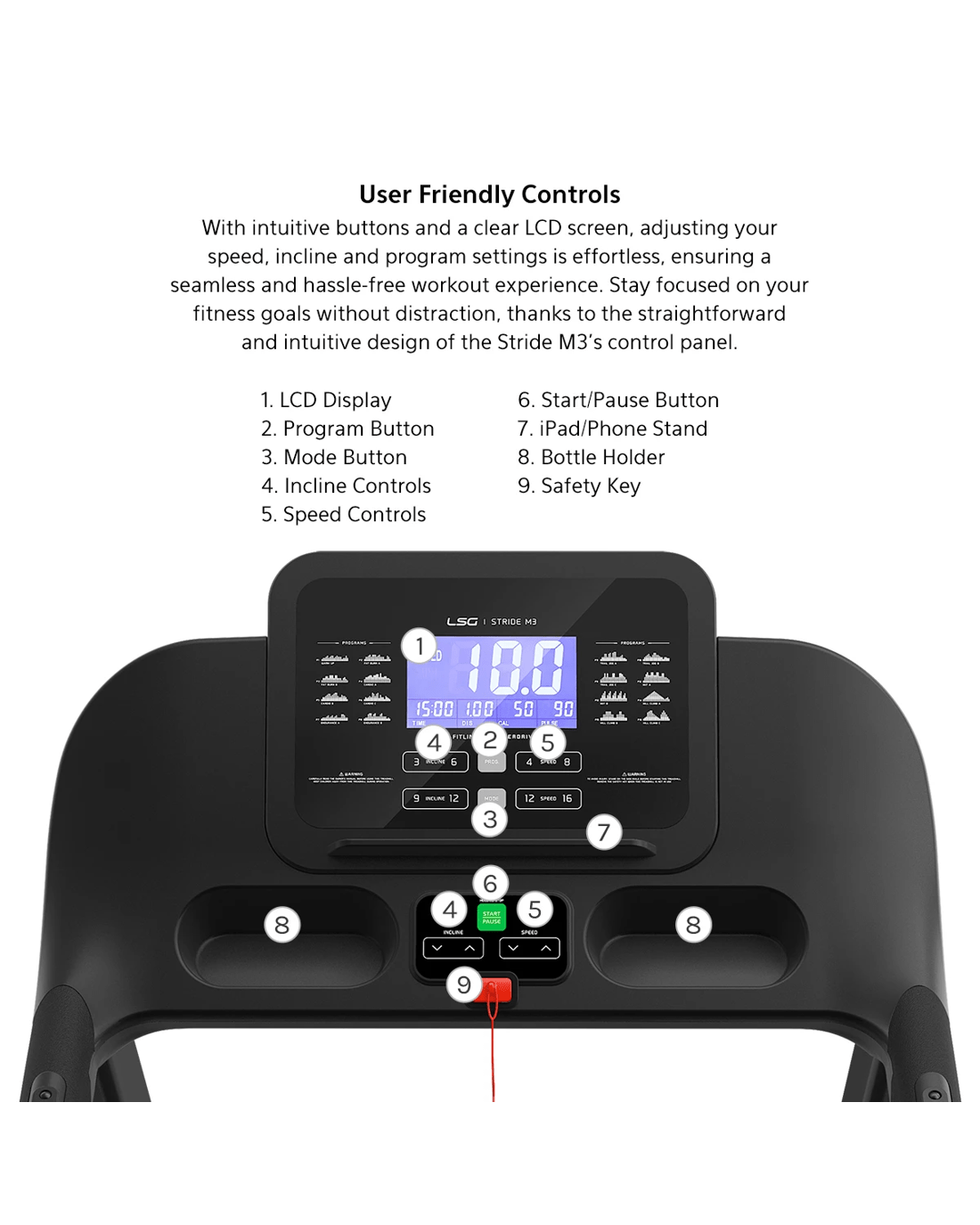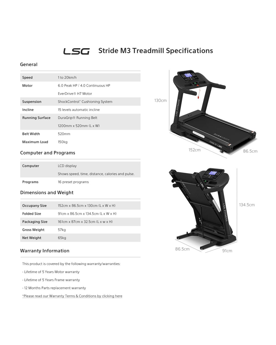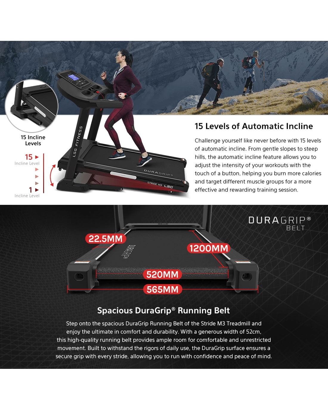 Running Surface: DuraGrip® Running Belt 1200mm x 520mm (L x W)