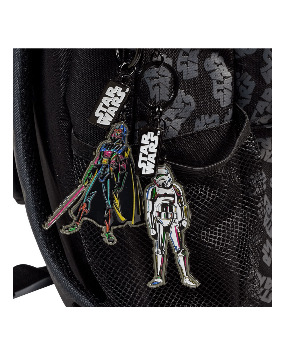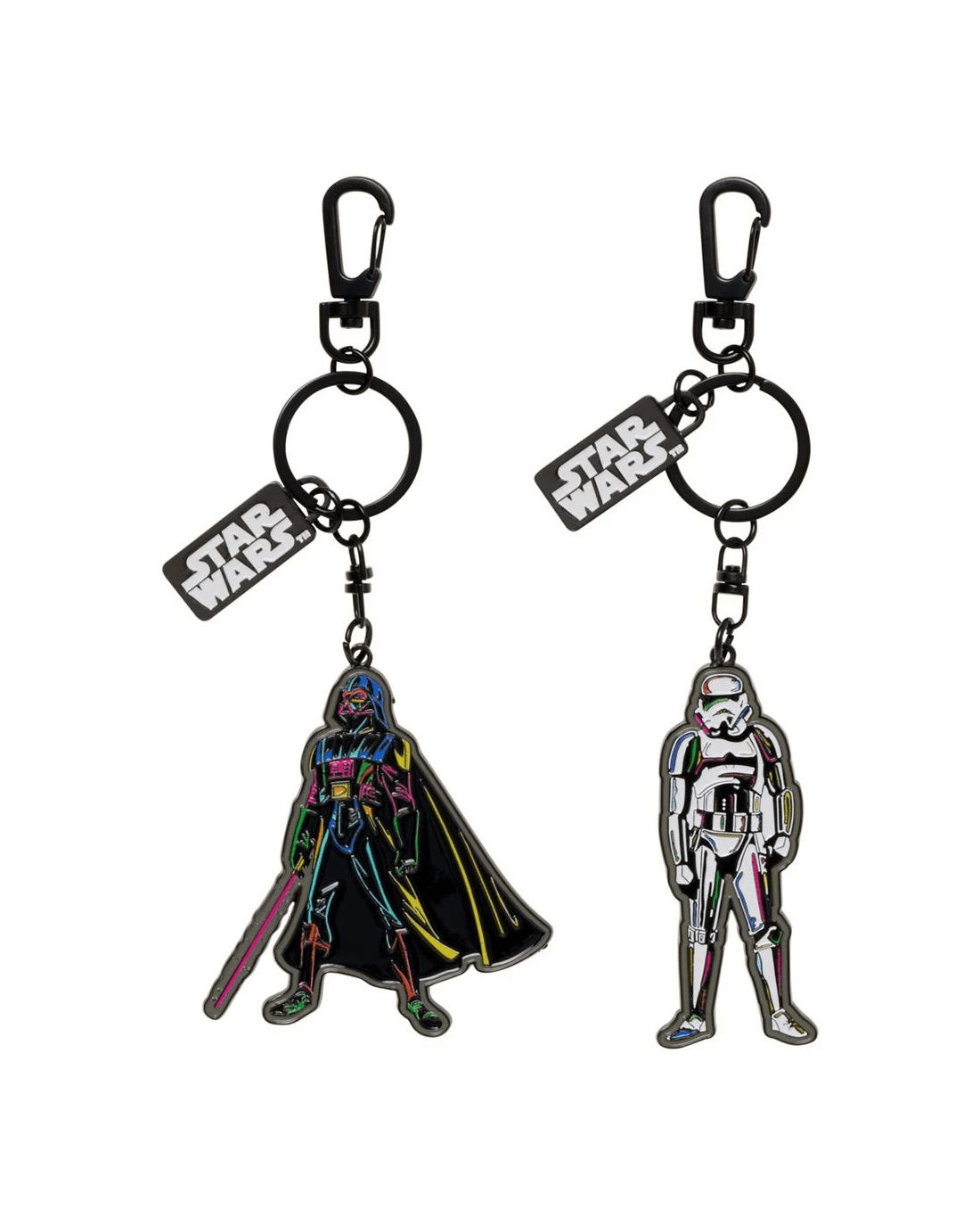- This pack includes Darth Vader and Stormtrooper-themed metal key rings.