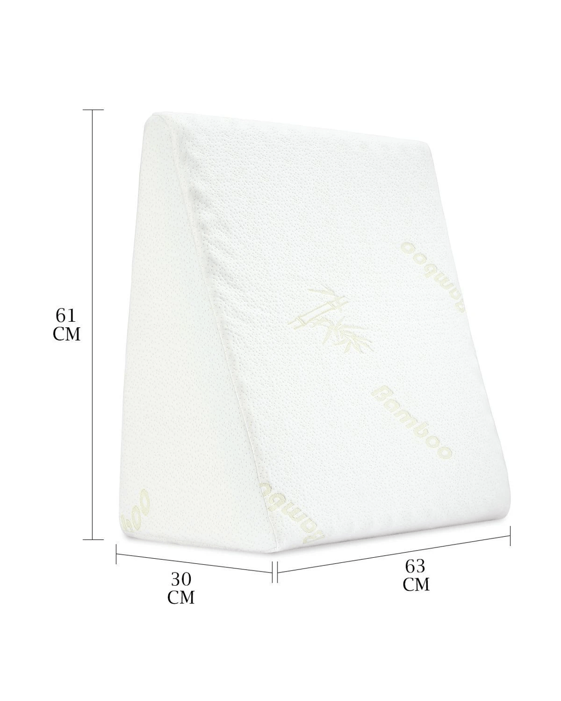 This Memory foam and cooling gel wedge pillow is a beneficial piece for many people. The cooling gel helps to create coolness for people lying on. The memory foam is for the benefits of seamless support and to reduce the pressure of the back, legs or knees. The pillow in a shape of wedge is great for many who are suffering from Gerd, acid reflux or back pain. It can be a comfortable backrest, leg raiser, and more. Heights are adjustable ranging 10cm, 20cm and 30cm. Thanks to its eco-friendly materials including the bamboo fabric cover, the pillow is anti-allergy, anti-bacterial and anti-mite, ideal for common use. The zip off cover is machine washable, convenient to clean.