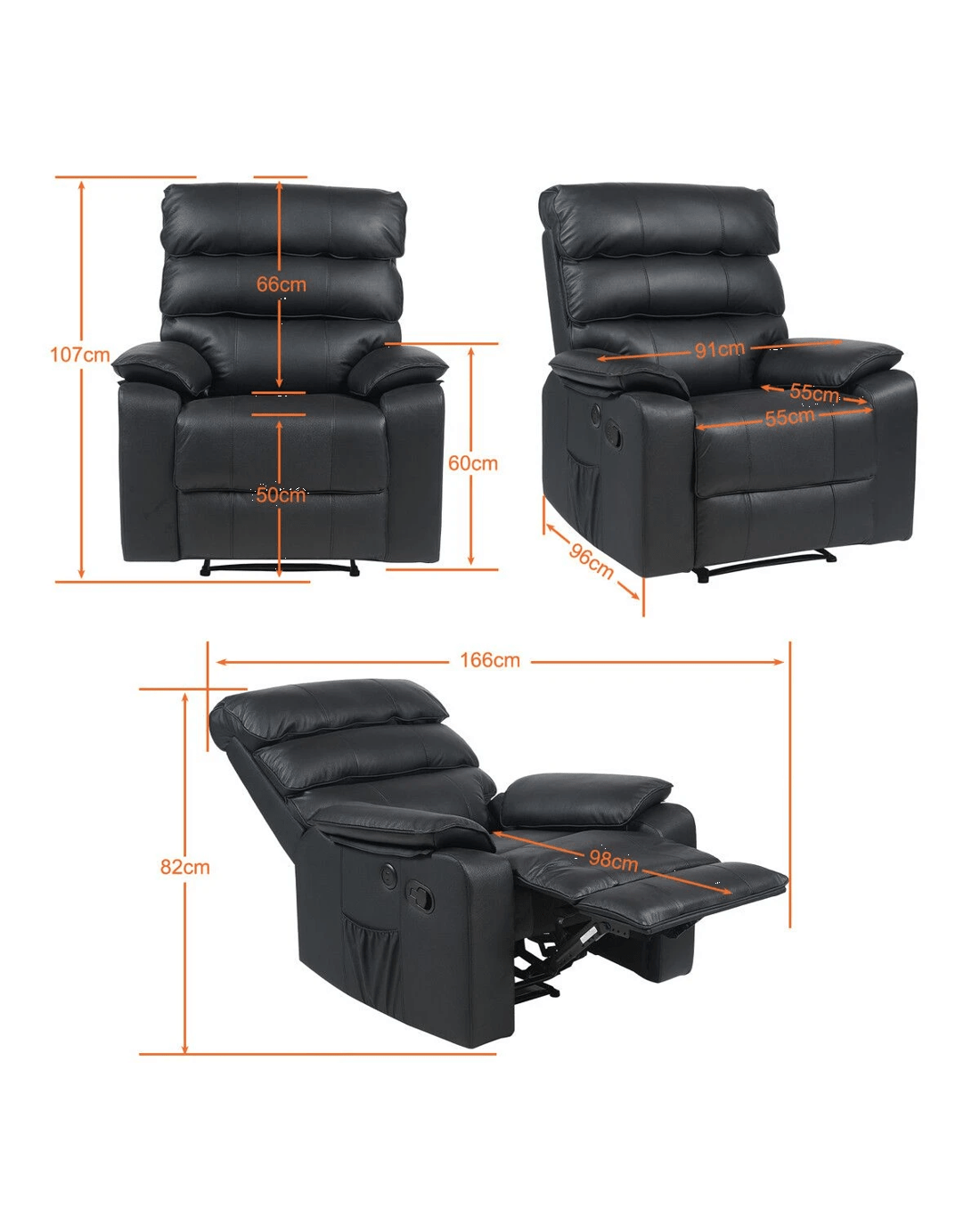 Sold by AuswayLUXDREAM Recliner Massage Chair Sofa Single Black