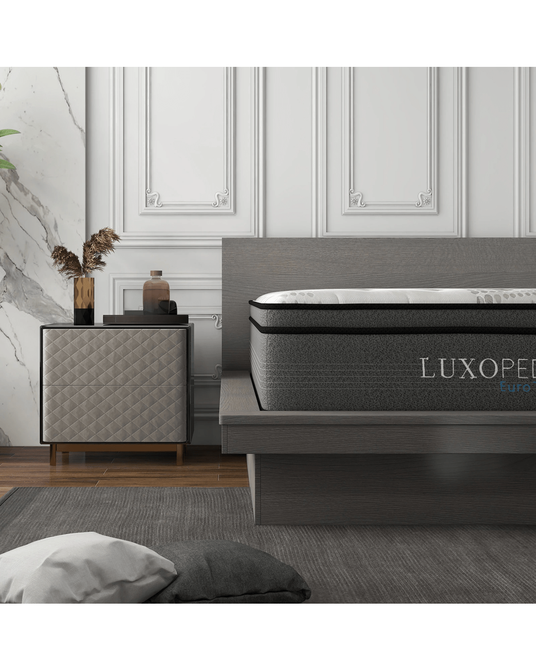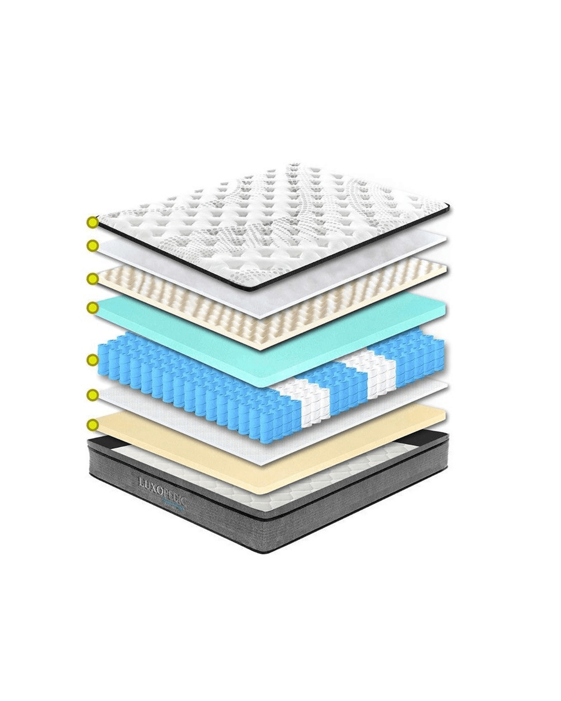 Luxopedic Pocket Spring Mattress 5 Zone 32CM Euro Top Memory Foam Medium Firm - Single Bed - White, Grey
