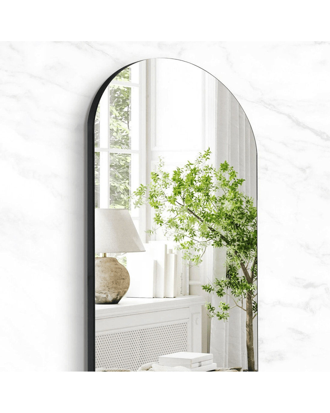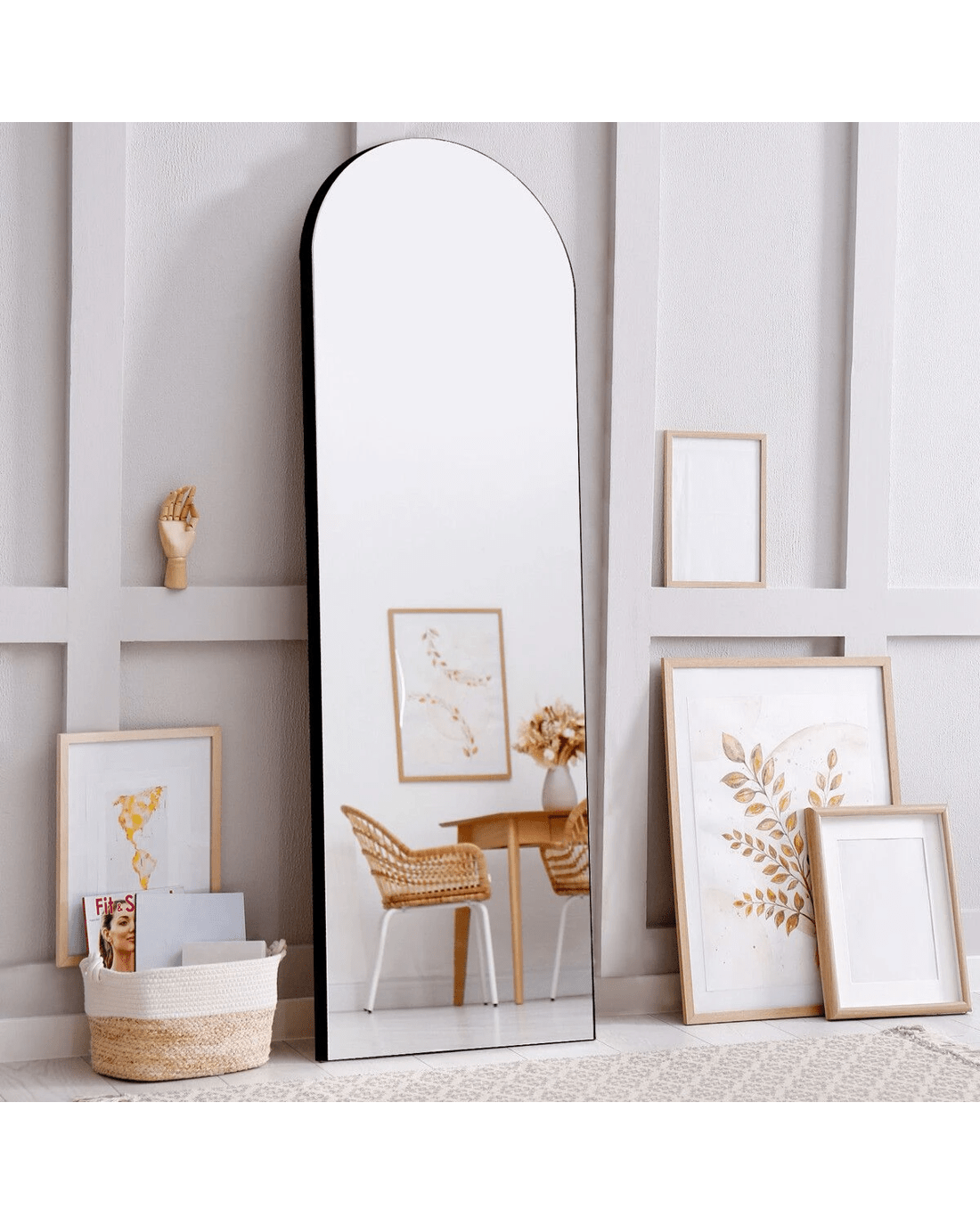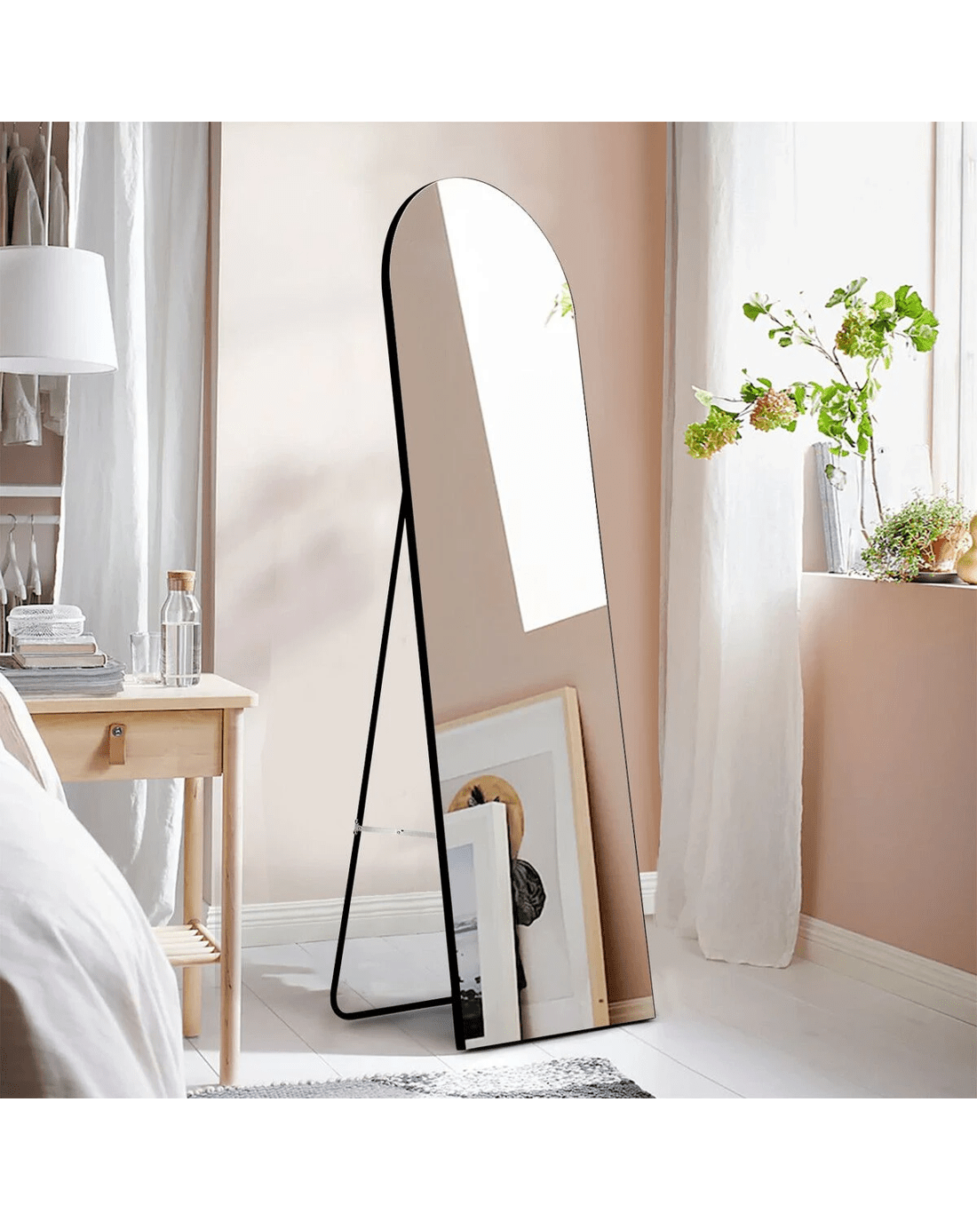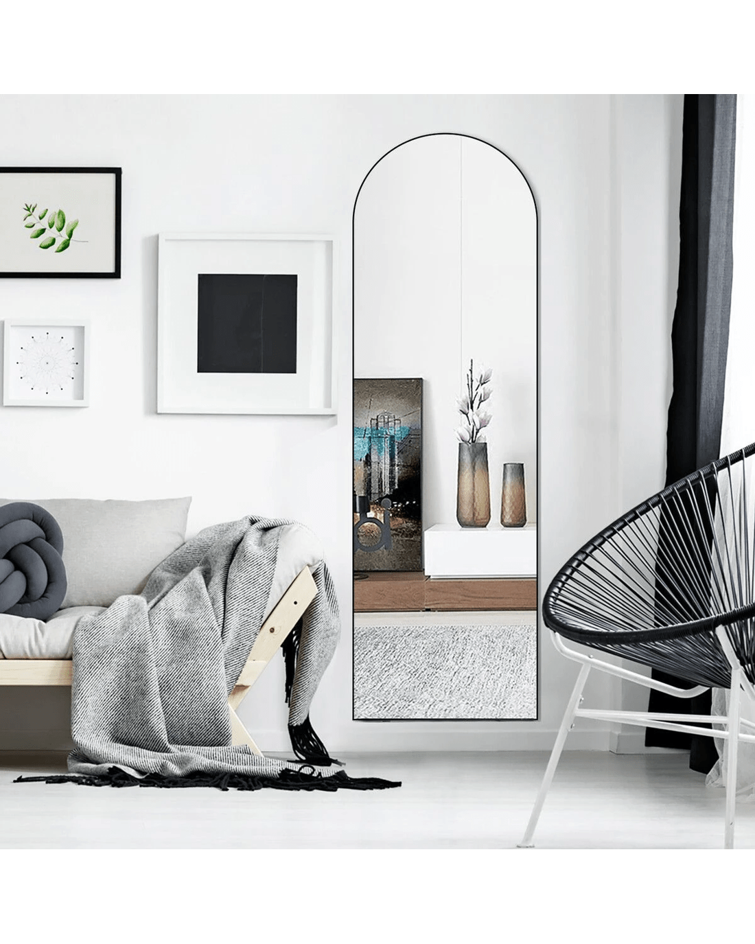 View yourself from head to toe to check if the dress and shoes are working for you by using this Arch Full Length Body Floor Mirror. The full-body mirror is completed with a high-quality aluminium alloyed frame, a fine finish, and HD glass, promising hard-wearing durability, rust resistance, and clear reflection. Featuring a vertical rectangle design, this modern mirror is built with a folding and detachable stand, making it a hanging mirror, a leaning mirror, or a floor mirror in your living room, bedroom, entryway, or cloakroom. Better still, the arched floor mirror is shatterproof and anti-burst for added security, especially for homes with children and pets.